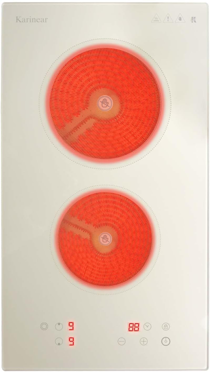 - 【Elegant Beige-gray Glass Desig】Transform your kitchen with the sleek and stylish Beige-gray glass electric cooktop. Its luminous surface, reminiscent of moonlight, adds a modern touch and elevates your space. This durable, heat-resistant glass is not only stunning but also smooth and easy to clean. Flush-mounted into your countertop, this 2 burner electric cooktop combines functionality with elegance.