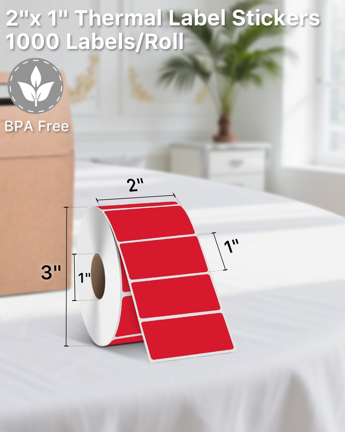 - Specifications: iEager 2" x 1" red thermal label with perforation line, 1000 labels/roll. Paper tube inner diameter 1". No ink, toner or ribbons needed