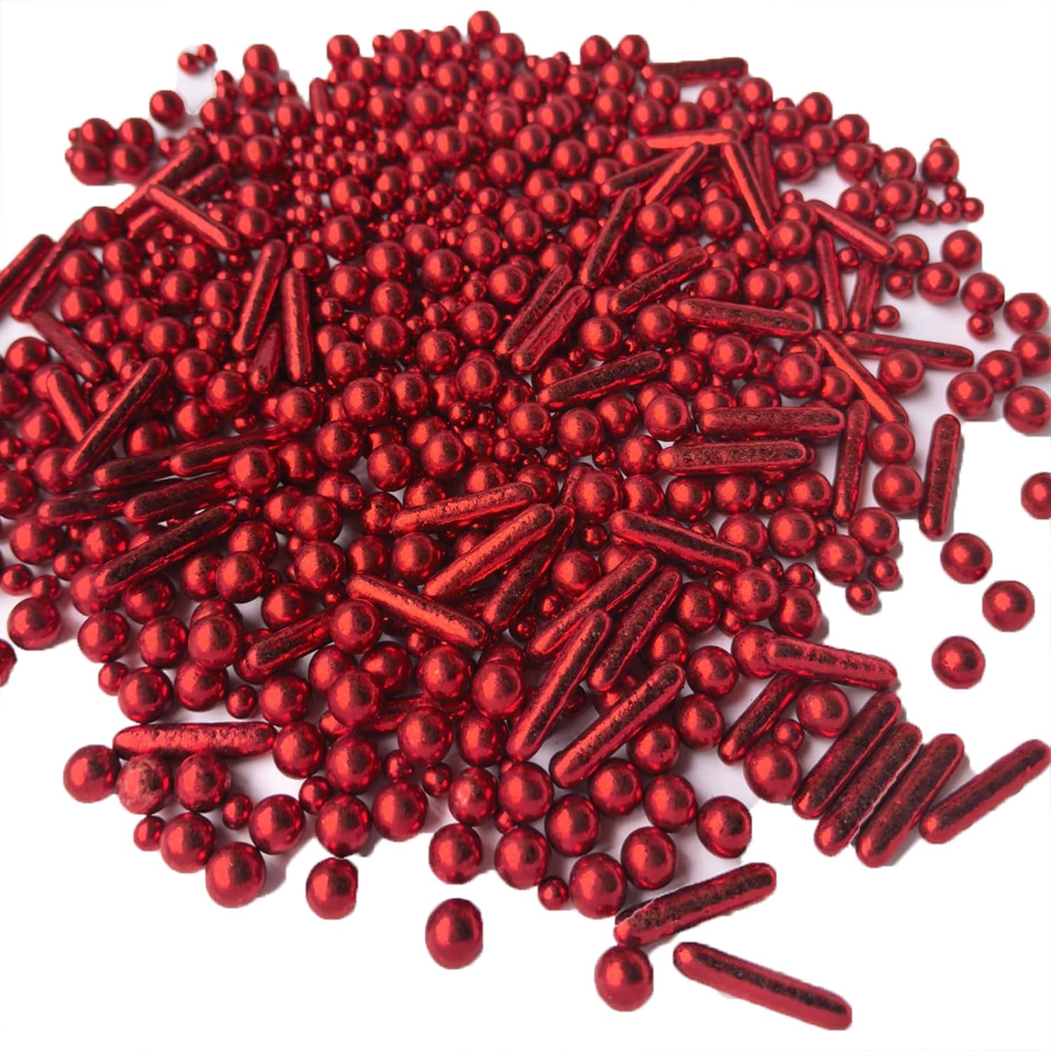 Sprinkles Red Pearl Sugar Candy Mix Size Baking Cake Decorations Cupcake Toppers Celebrations Shaker Jar Wedding Shower Party (130g/4.2oz)