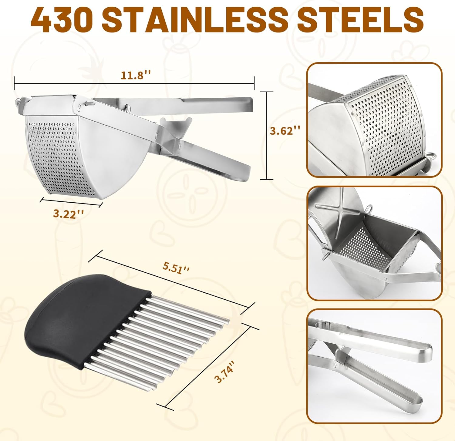 Heavy Duty Stainless Steel Professional Ricer for Mashed Potatoes and Ricer Kitchen Tool, Mash Potato Masher for Creamy Mashed Potatoes (Potato Ricer Set)
