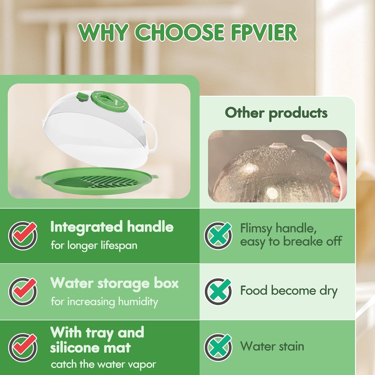 - 【No More Water Stains or Burns】Heating food often leaves water stains and can cause burns from hot droplets. Our microwave cover includes a plastic tray and silicone mat to collect all water droplets, keeping your microwave clean and your hands safe.