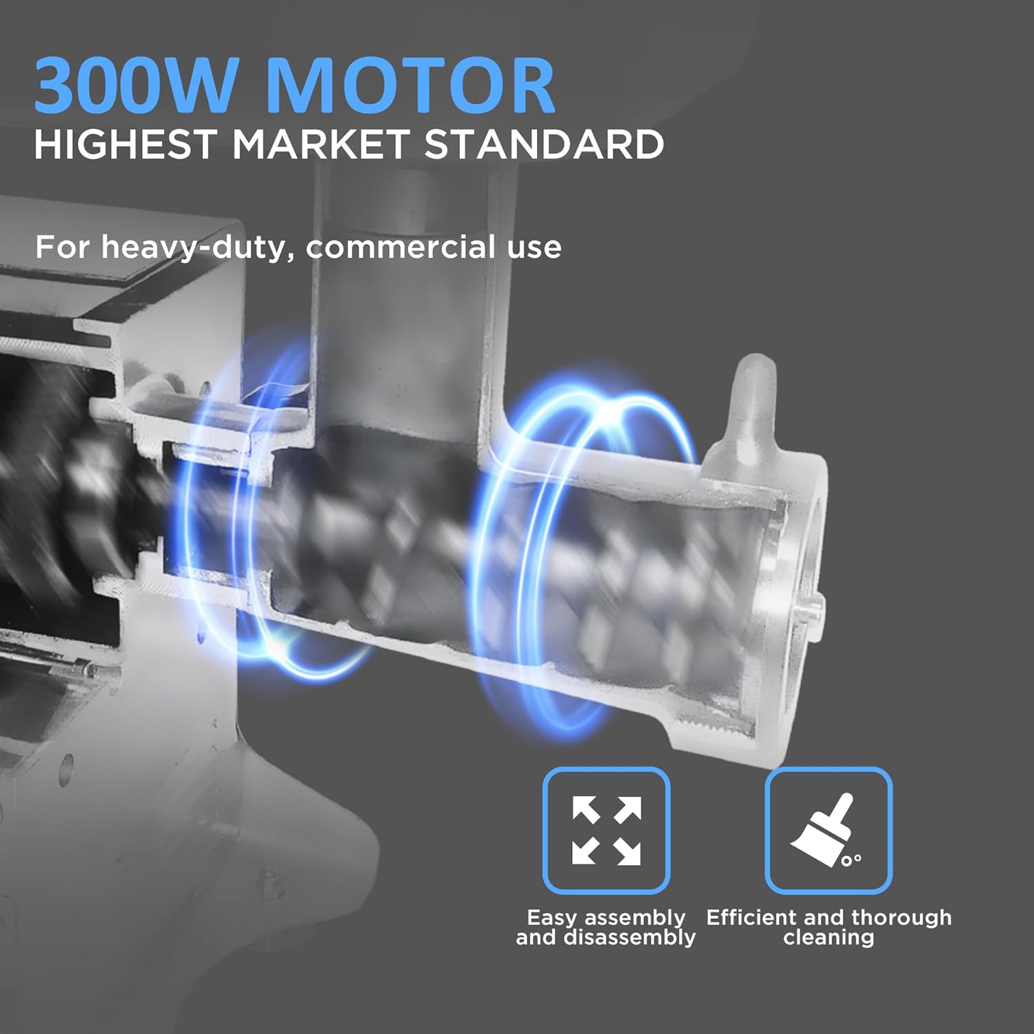 - Powerful 300W Motor for High Efficiency:The commercial meat grinder equipped with a 300W (0.4HP) motor, this commercial meat grinder can process up to 240 lbs of meat per hour. Designed for continuous operation, it ensures high efficiency for both home and commercial use.