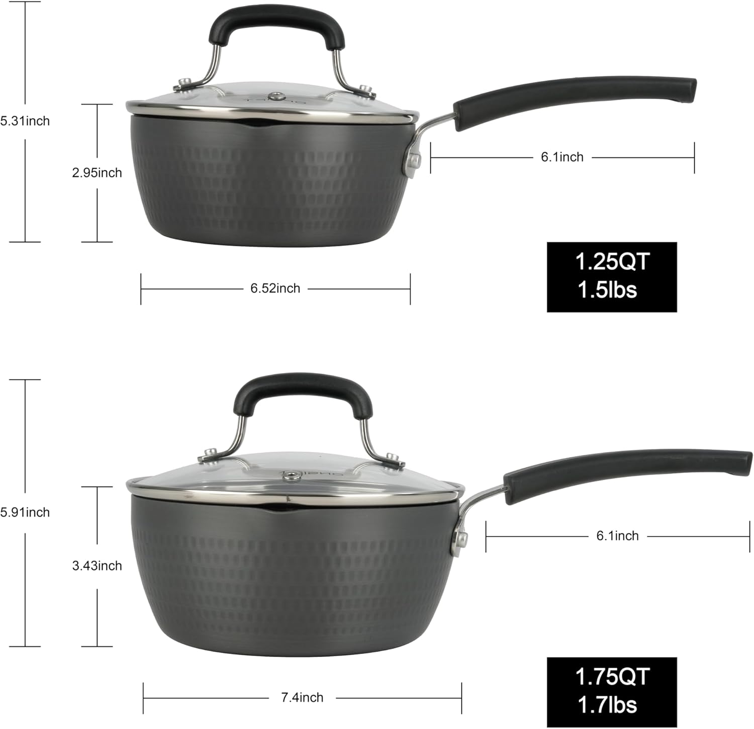Nonstick Small Sauce Pan with Lid, 1.25 Quart and 2.4 Quart Sauce pan with Pour Spouts, Multipurpose Handy Little Saucepan with Stay Cool Handle, Small Pots for Cooking, Soups, Noodles, Milk