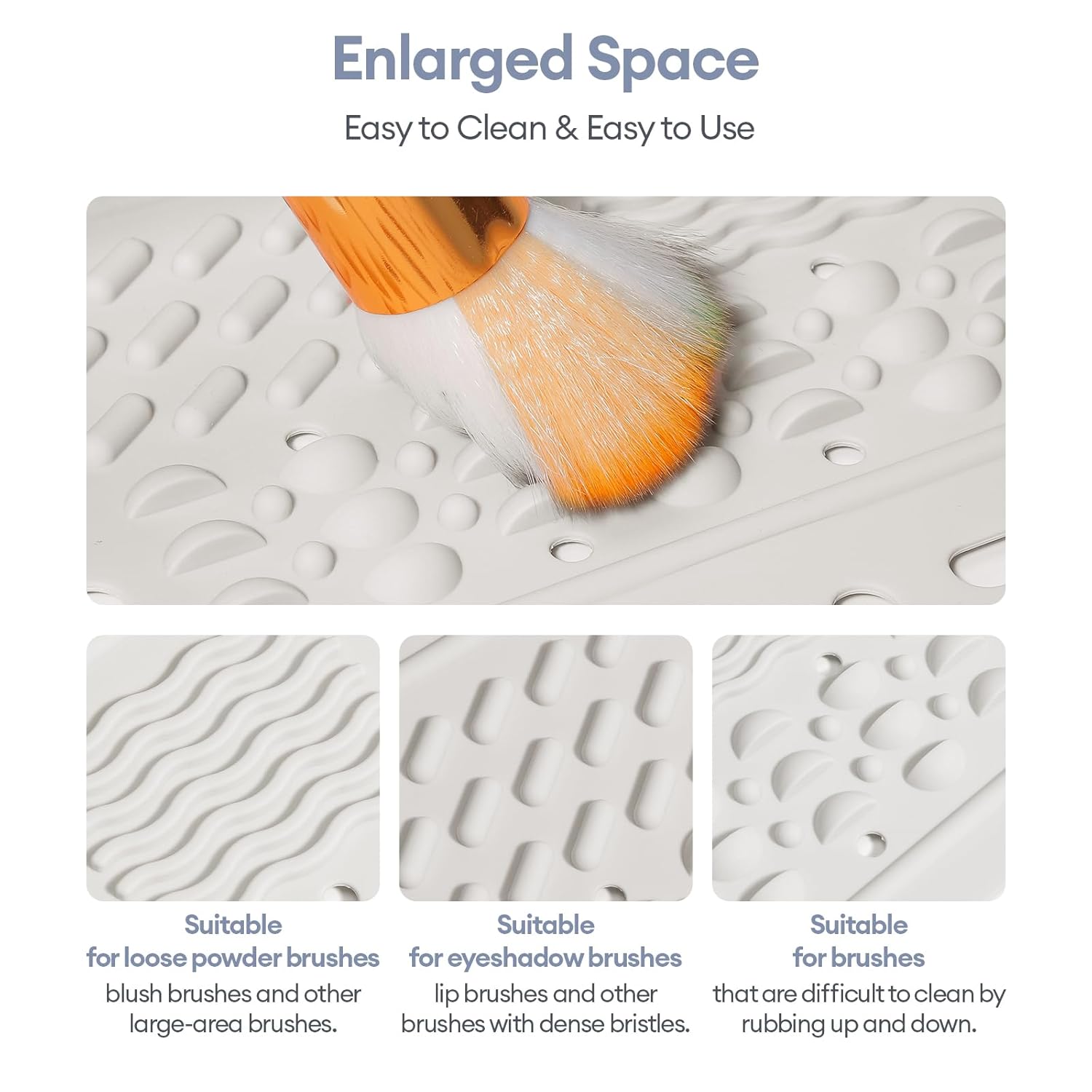 - Easy to clean and easy to use: Our bathroom sink mat has 3 different texture designs on the brush washing area, which effectively helps you remove makeup residue with different brushes, clean without hurting the bristles, and wash and dry in one. It is easy to wipe clean and towel dry after use to prevent water spots, and it dries quickly.