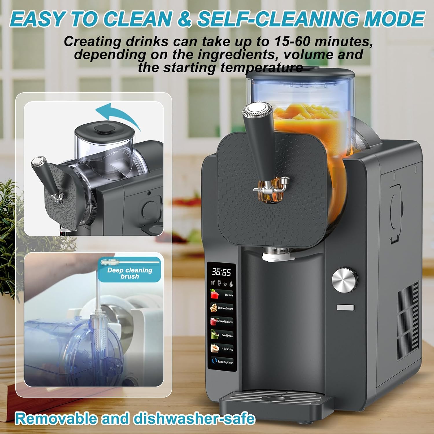 - ONE-TOUCH AUTO CLEANING – HASSLE-FREE MAINTENANCE The built-in automatic cleaning function makes post-use cleanup a breeze. Just add water and start the cleaning mode—no need for tedious scrubbing. The detachable design allows for easy disassembly and reassembly. A cleaning brush is also included to tackle stubborn residues, ensuring the machine stays spotless after every use.