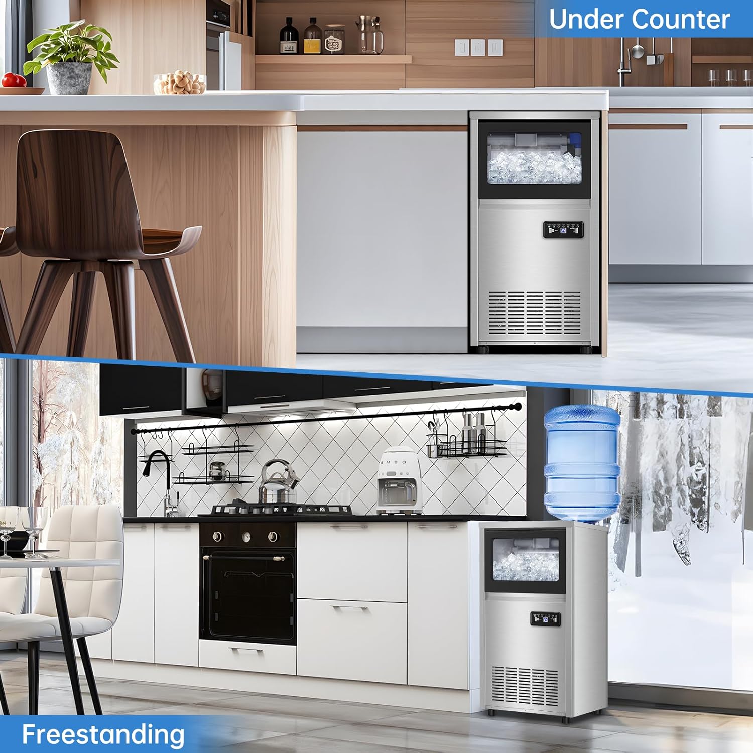 - Durable Construction & Adjustable Features: Built with high-quality evaporators and adjustable feet, this stainless steel ice machine guarantees durability and stability, making it a perfect choice for both household and commercial use