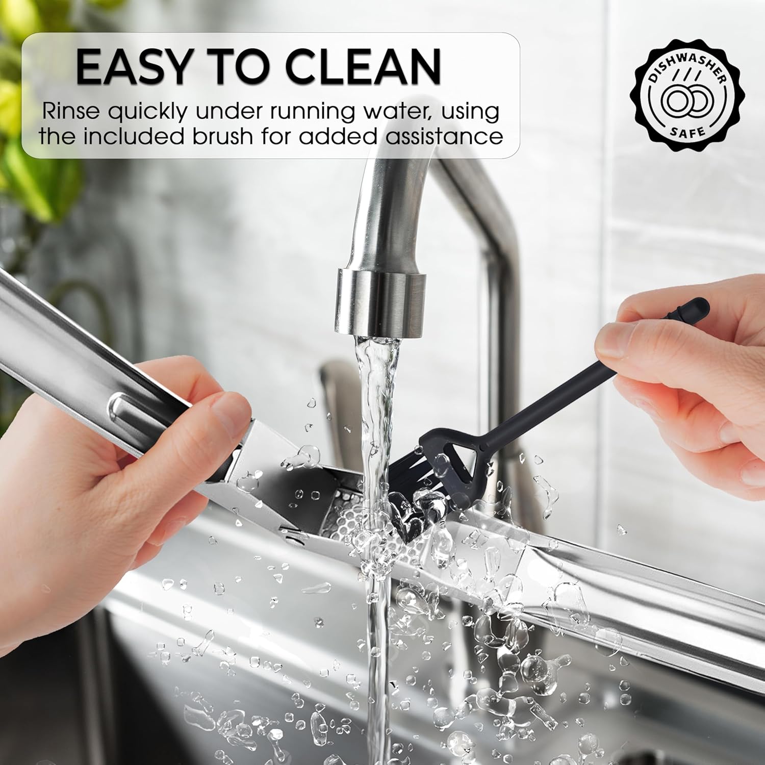 - 💧 EASY TO CLEAN: Featuring a 270-degree open design and an included brush, this metal garlic press is extremely easy to clean. Its self-cleaning feature ensures minimal hassle, making it a top choice for a garlic hand press and garlic smasher tool. 👉 Ideal for gifting on Mother’s Day to busy moms who appreciate time-saving tools.