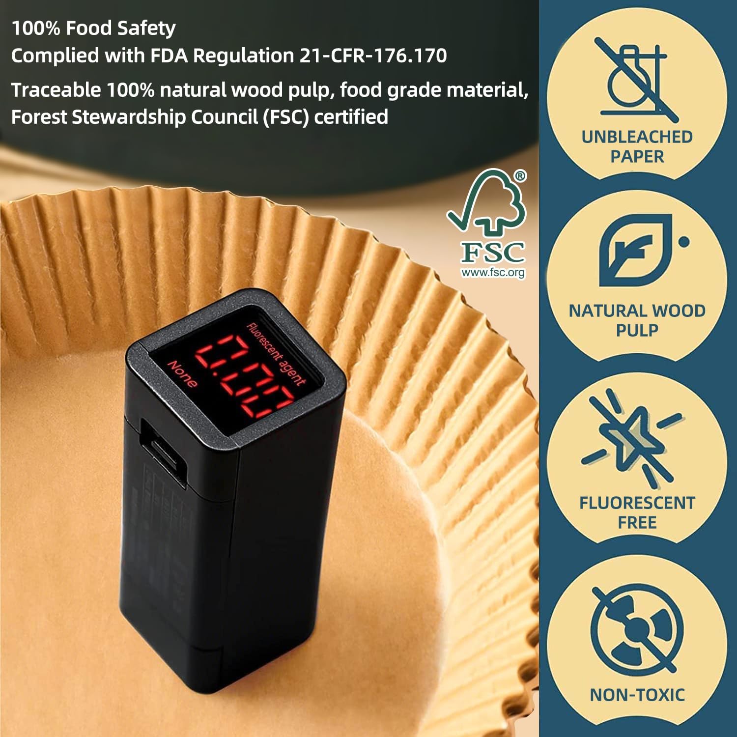 - Food Grade Airfryer Accessories - HONYAO air fryer paper liners are made of food grade parchment paper and silicone oil 100% healthy and heat-resistant, BPA free, waterproof, oil-proof, and non-stick. Our Air fryer paper liners can withstand temperatures up to 428 °F (220 °C) while retaining the flavor of the food.