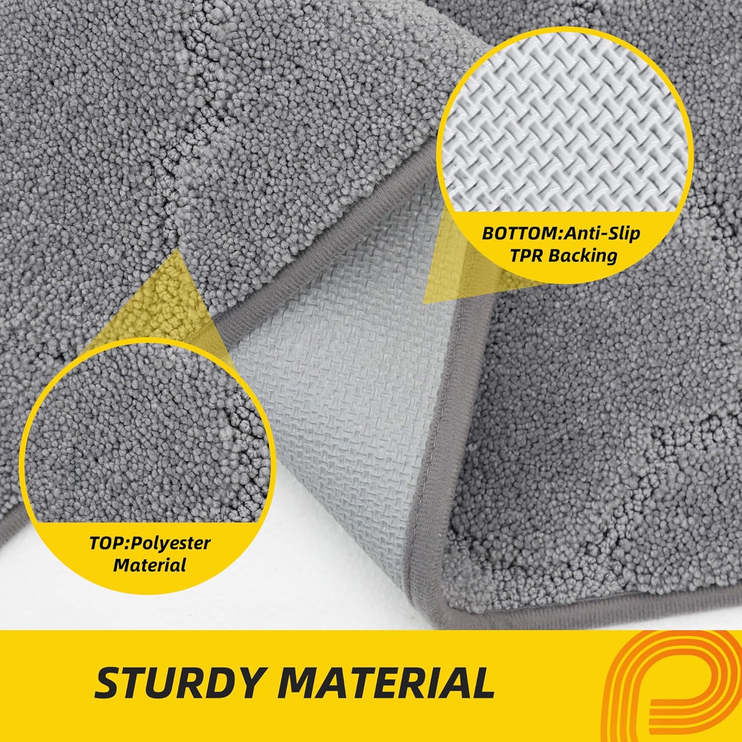 JSEI Kitchen Rugs, Non-Slip Kitchen Mats for Floor, Soft Washable Absorbent Kitchen Mats 2 Pieces, Kitchen Carpet Runner with TPR Backing, Polyester, 20”x32”+20”x48”, Light Grey