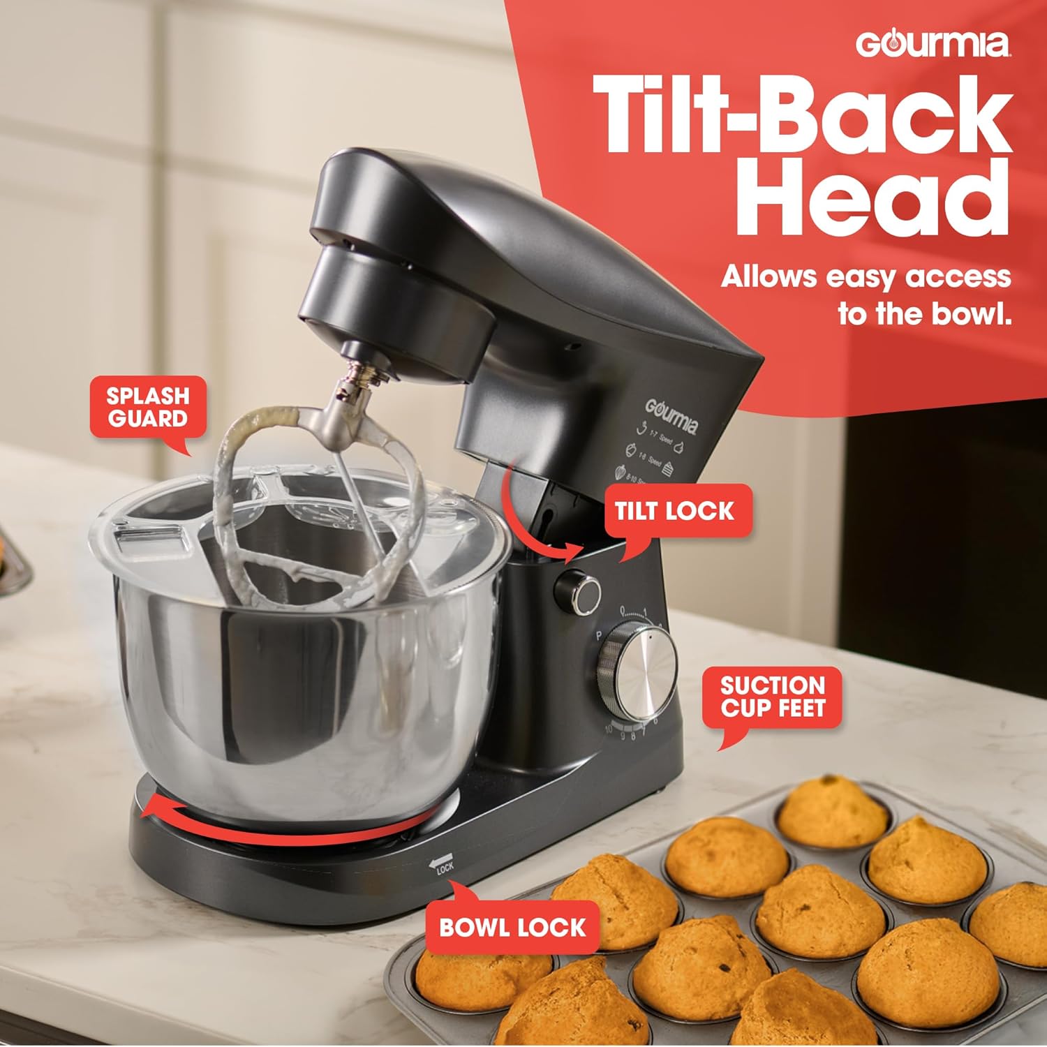 - TILTING HEAD FOR EASY BOWL ACCESS – The food mixer bowl locks in place with a tilting head that allows easy access to ingredients and attachments. Suitable as a bread mixer, cookie dough mixer, flour mixer machine, or tamale masa mixer, and more.