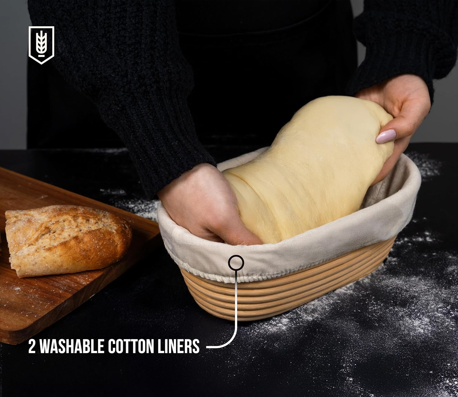 - 2 Banneton Baskets: Includes two 9.8” banneton baskets (holds up to 2 lb), 2 washable linen liners, and a beginner’s guide to get you started!
