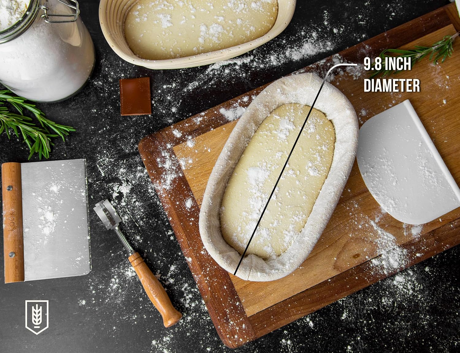 Kook Banneton Bread Proofing Baskets, Artisan Sourdough Bread Making Baskets, 9.8 Inch Handwoven Rattan Baskets and Cloth Liners, Set of 2, Oval