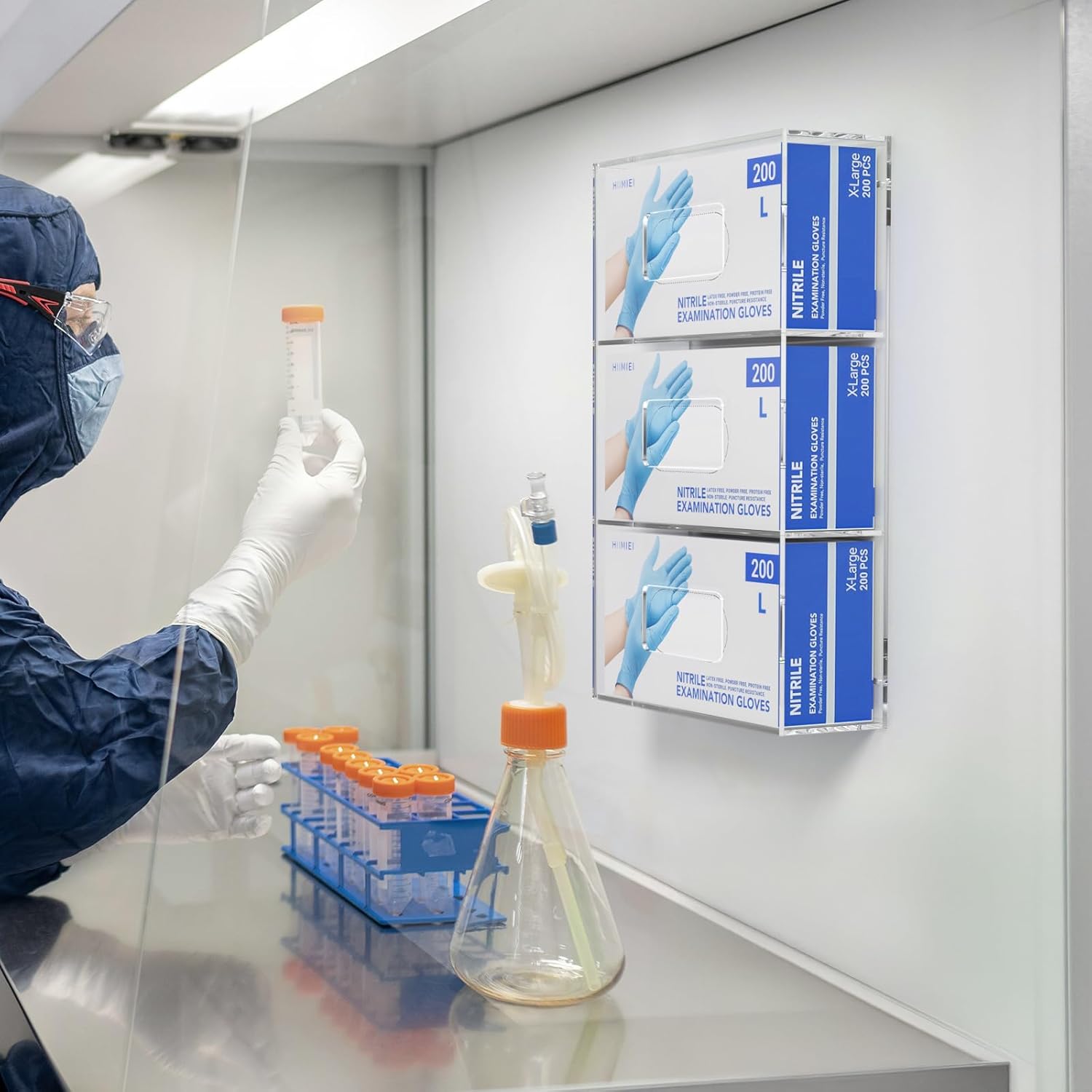 - 【Versatile using way】Glove dispenser wall mount is perfect for lab, medical clinics, dentists, hospitals, food processing plants, automotive factories, home garages and studios where need to hold disposable rubber latex gloves, plastic bags, masks, and more.