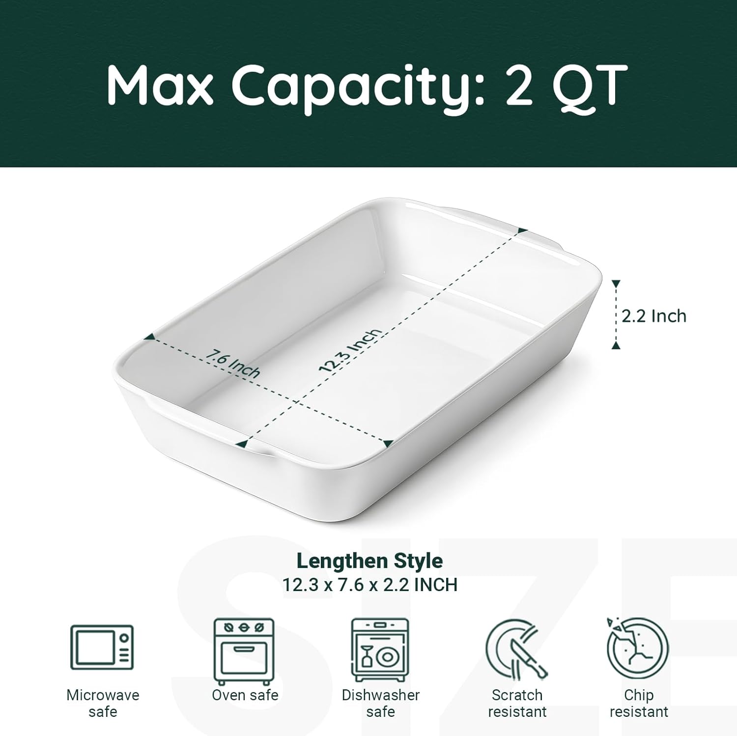 2 QT Small Ceramic Baking Dish, White Casserole Dish with Roasting Racks, Lasagna Pan for Oven, Ceramic Baking Pan, Kitchen Decor, Microwave Oven Safe, Dinner, Wedding (7.6" x 12.3")