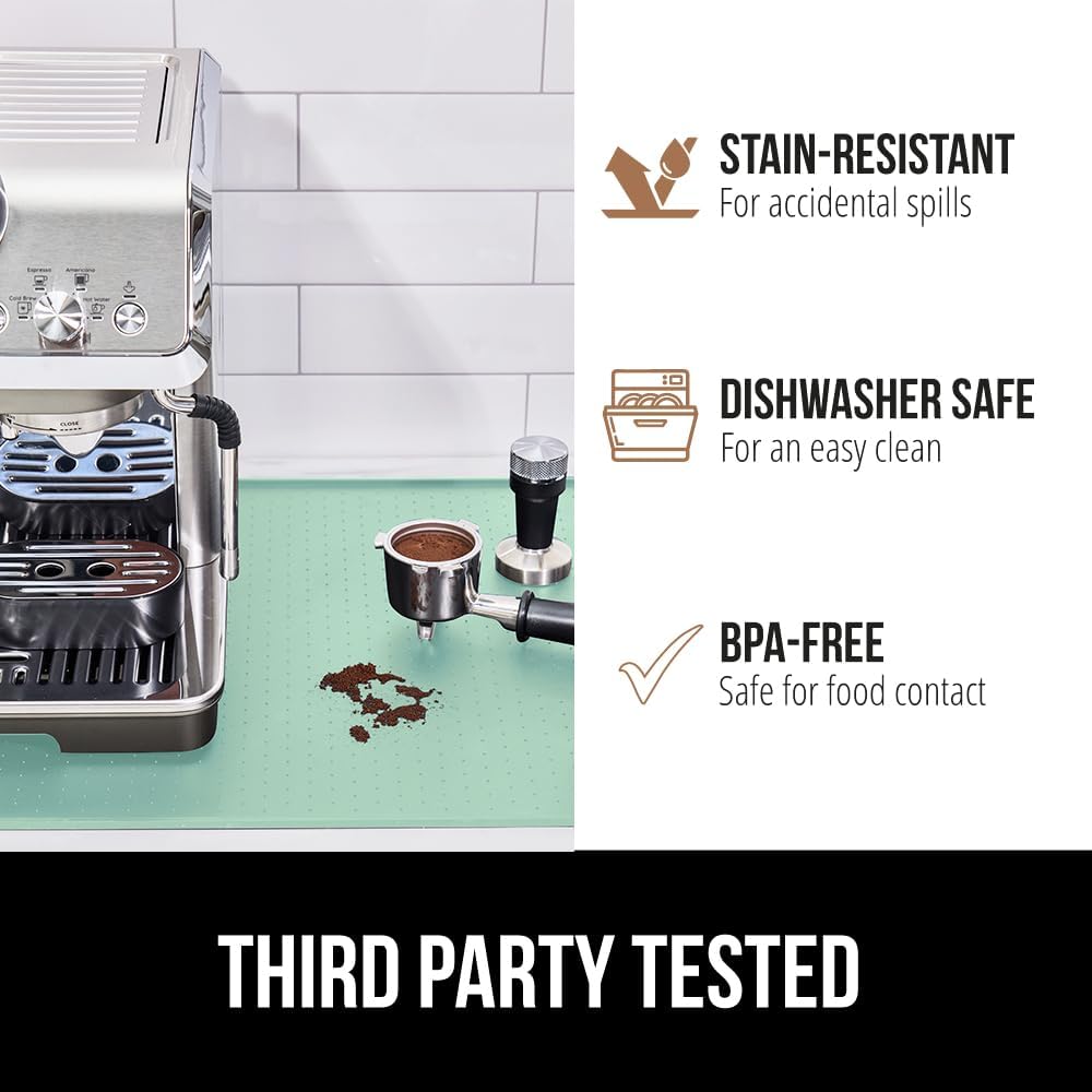 GORILLA GRIP Silicone Coffee Mat, 18x28, Espresso Drink Bar Station Accessories, Waterproof Heat-Resistant Dish Drying Mats, Stay in Place on Kitchen Counter, Home Kitchen Décor Essentials, Mint