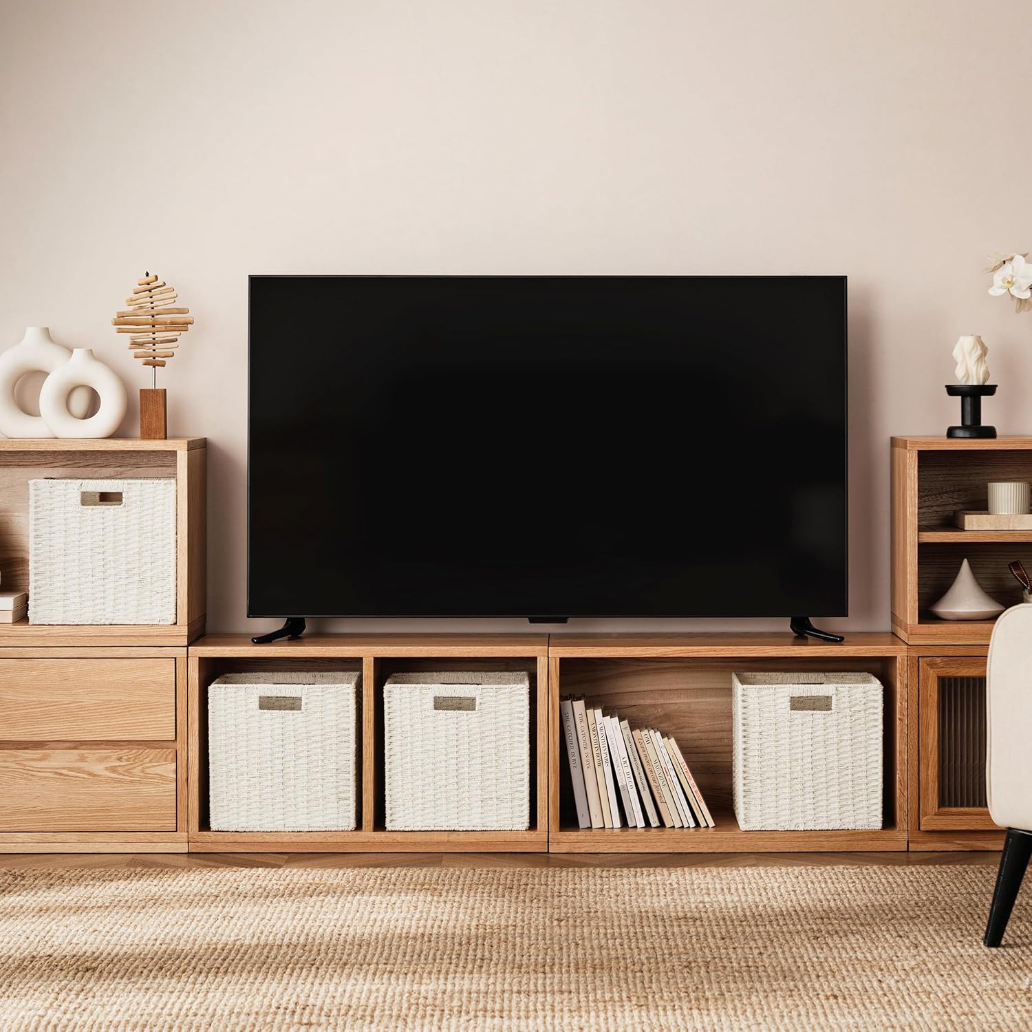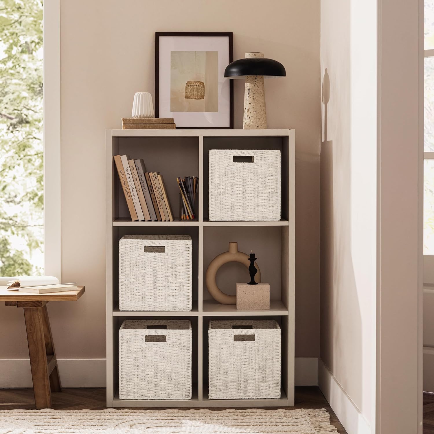 UBBCARE 3 Pack Wicker Basket, 11L×11H×10.5W inch Woven Paper Rope Storage Baskets for shelves, Foldable Cube Storage bin with Handle, Storage Basket for Organizing & Decor, White
