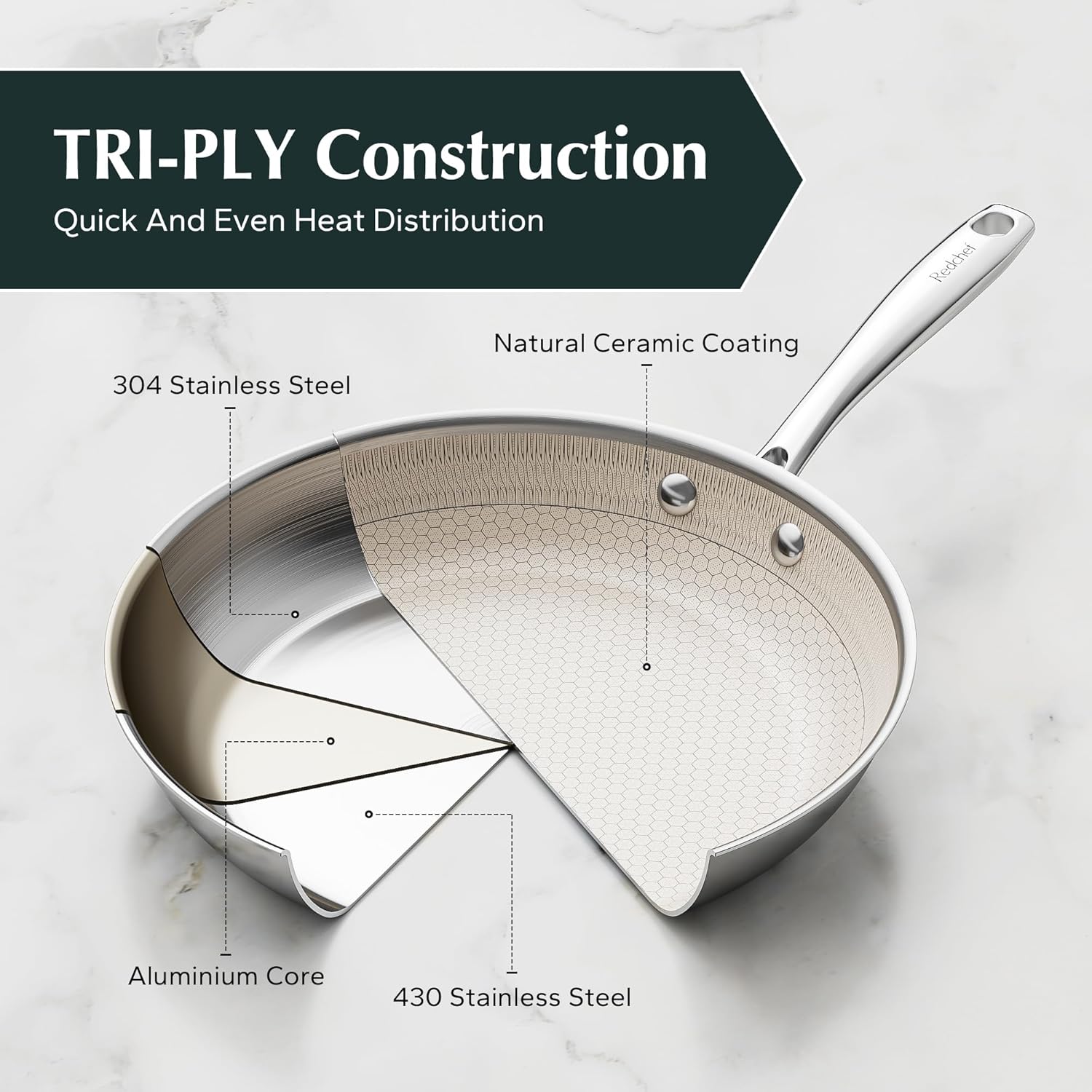 - Tri-Ply Construction: Build to last aluminum core sandwiched between two layers of stainless steel for even heat distribution and professional cooking results