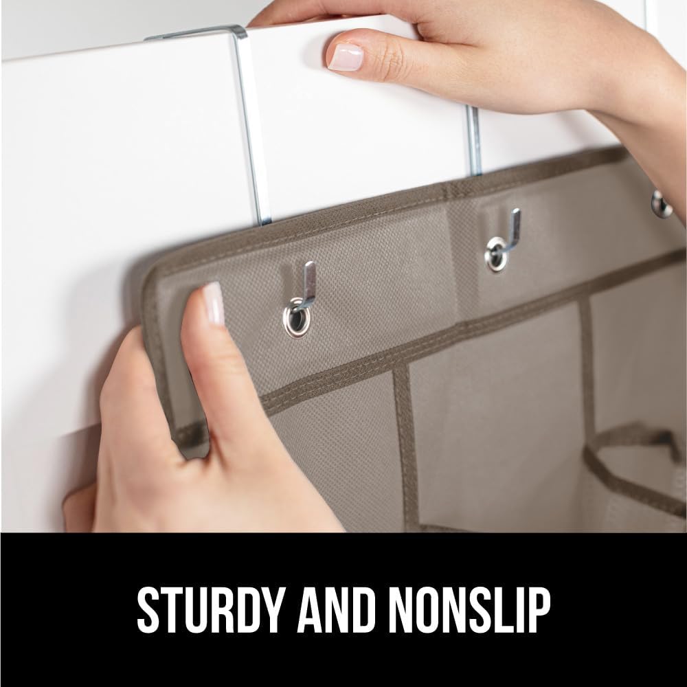 - SLIP RESISTANT DESIGN: organizer features four strong and sturdy hooks that firmly grip the top of doors and are designed to fit seamlessly over most doors