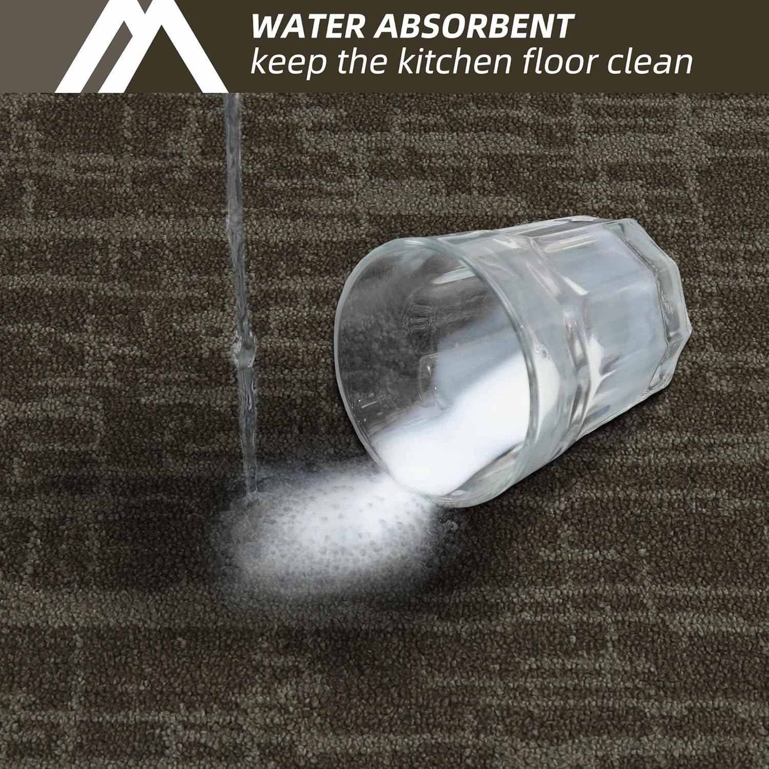 - Comfort,Stain Resistance and Absorbent:Soft kitchen floor mat is crafted from wear-resisting Polyetser fibers with three layers technology,providing a comfortable feeling.The tight sewing and dense yarns ensure exceptional durability,superb absorbency,stain resistance and colorfastness.Protect your floor from oil,moisture,sauces or food particles