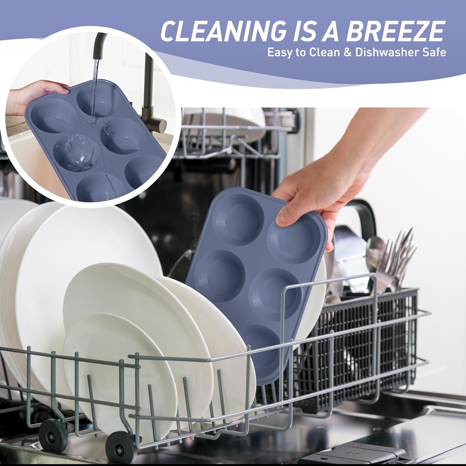 2 Pack 6 Cups Silicone Jumbo Muffin Pan with Metal Reinforced Frame Silicone Molds for Baking Cupcake Cake Baking Pans Muffin Tin Tart Pans Baking Set for Easter Christmas holiday Cookie Tin