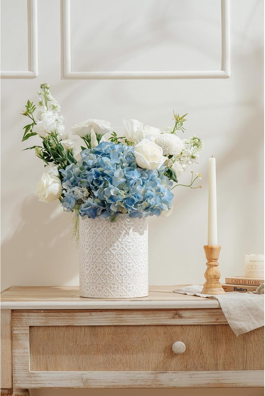 - Elegant Embossed Design: Elevate your kitchen decor with this beautifully crafted ceramic utensil holder featuring an elegant embossed pattern. The timeless design complements any farmhouse kitchen or modern home, making your kitchen more stylish while keeping utensils organized.