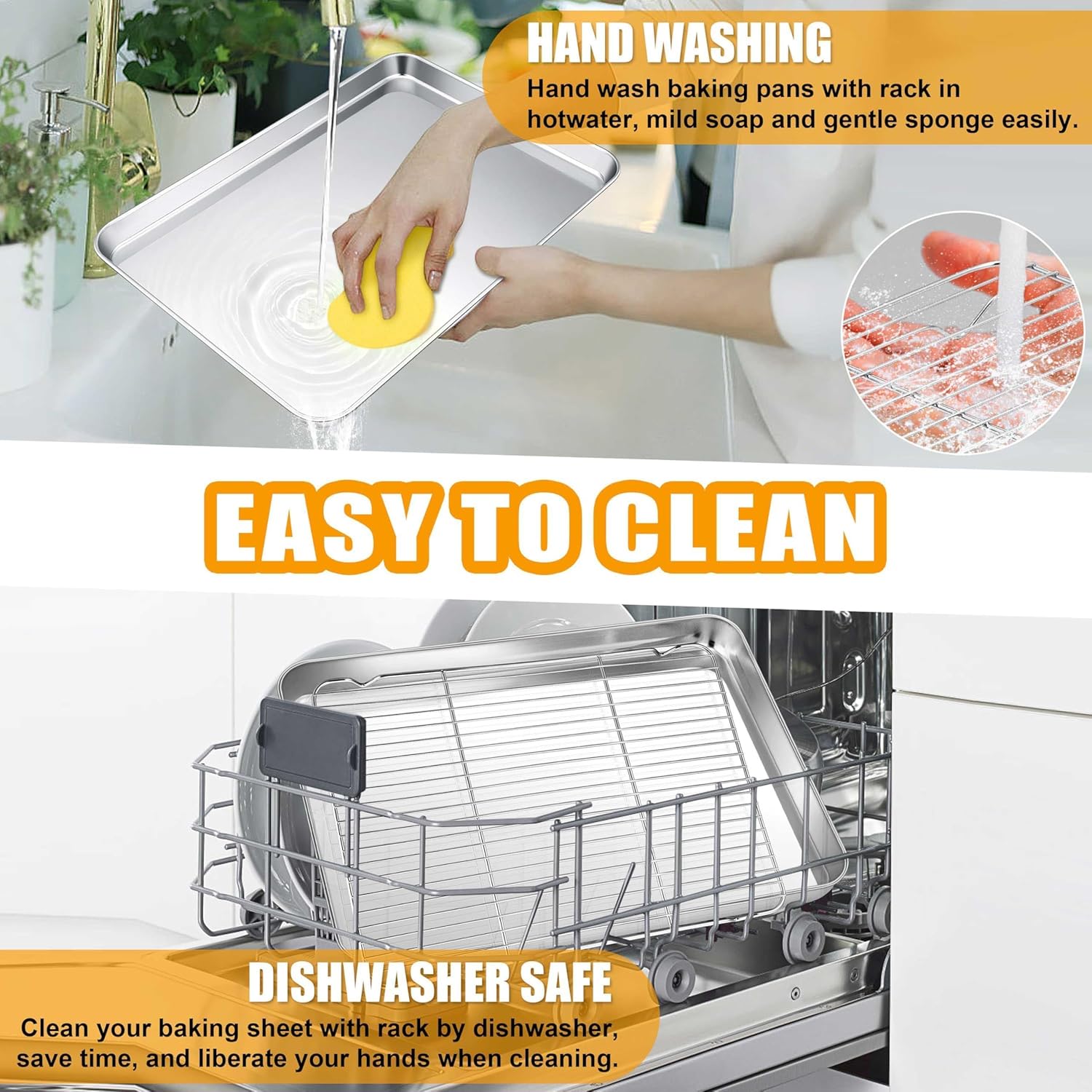 Homikit Baking Sheet Pan with Wire Cooling Rack Set, 20" x 14" Large Nonstick Stainless Steel Cookie Sheets Tray for Oven, Big Metal Bakeware Bacon Pans for Baking Cooking, Dishwasher Safe