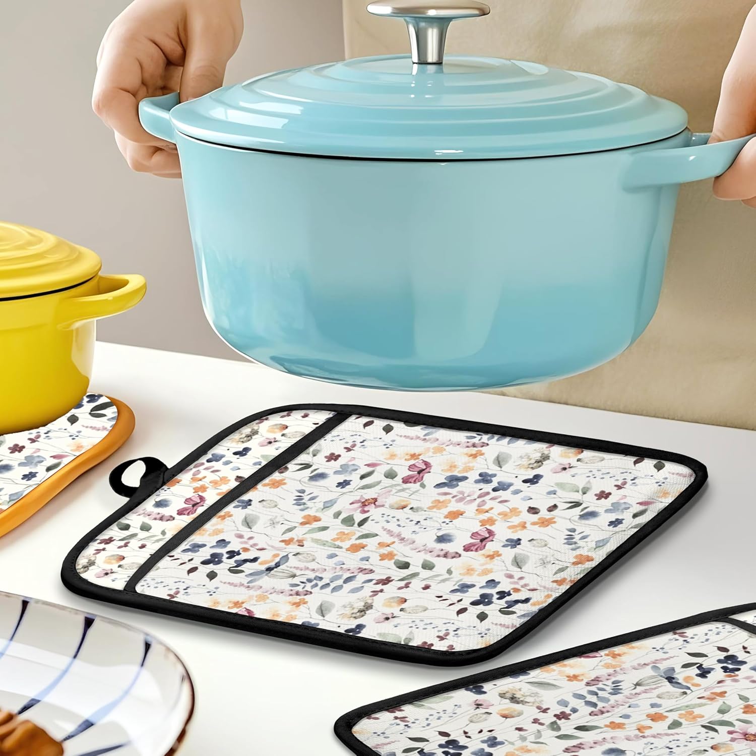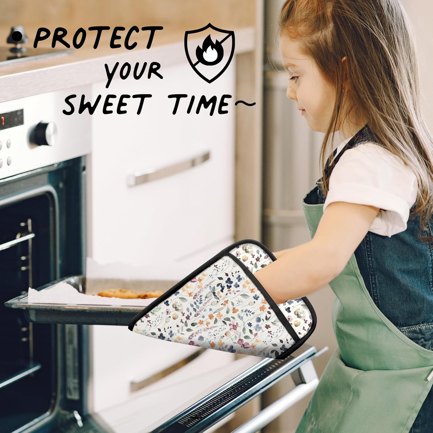 Vintage Floral Oven Mitts Set, Colorful Wildflowers Floral Heat Resistant Kitchen Oven Gloves for Baking and Cooking,Pot Holders