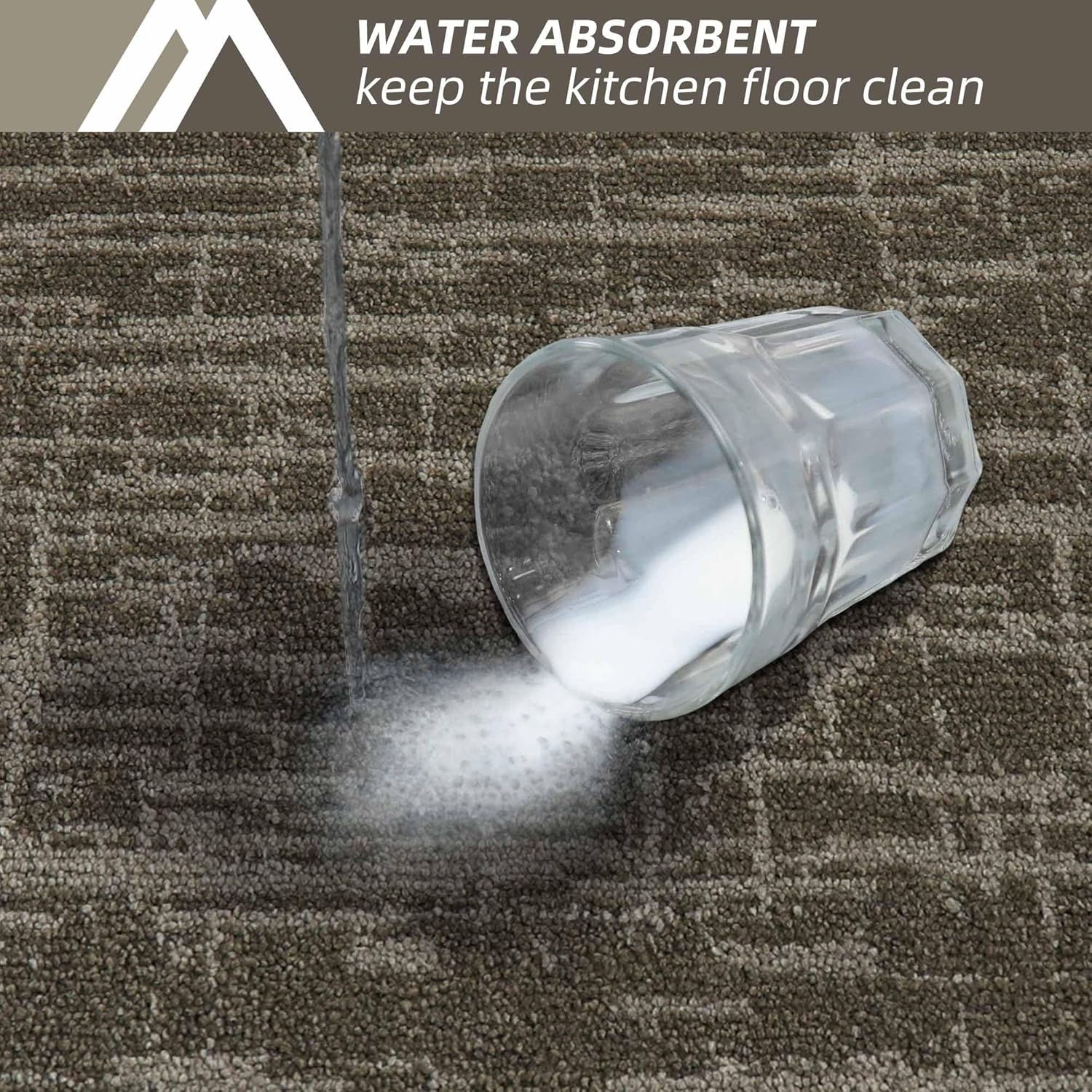 - Comfort,Stain Resistance and Absorbent:Soft kitchen floor mat is crafted from wear-resisting Polyetser fibers with three layers technology,providing a comfortable feeling.The tight sewing and dense yarns ensure exceptional durability,superb absorbency,stain resistance and colorfastness.Protect your floor from oil,moisture,sauces or food particles