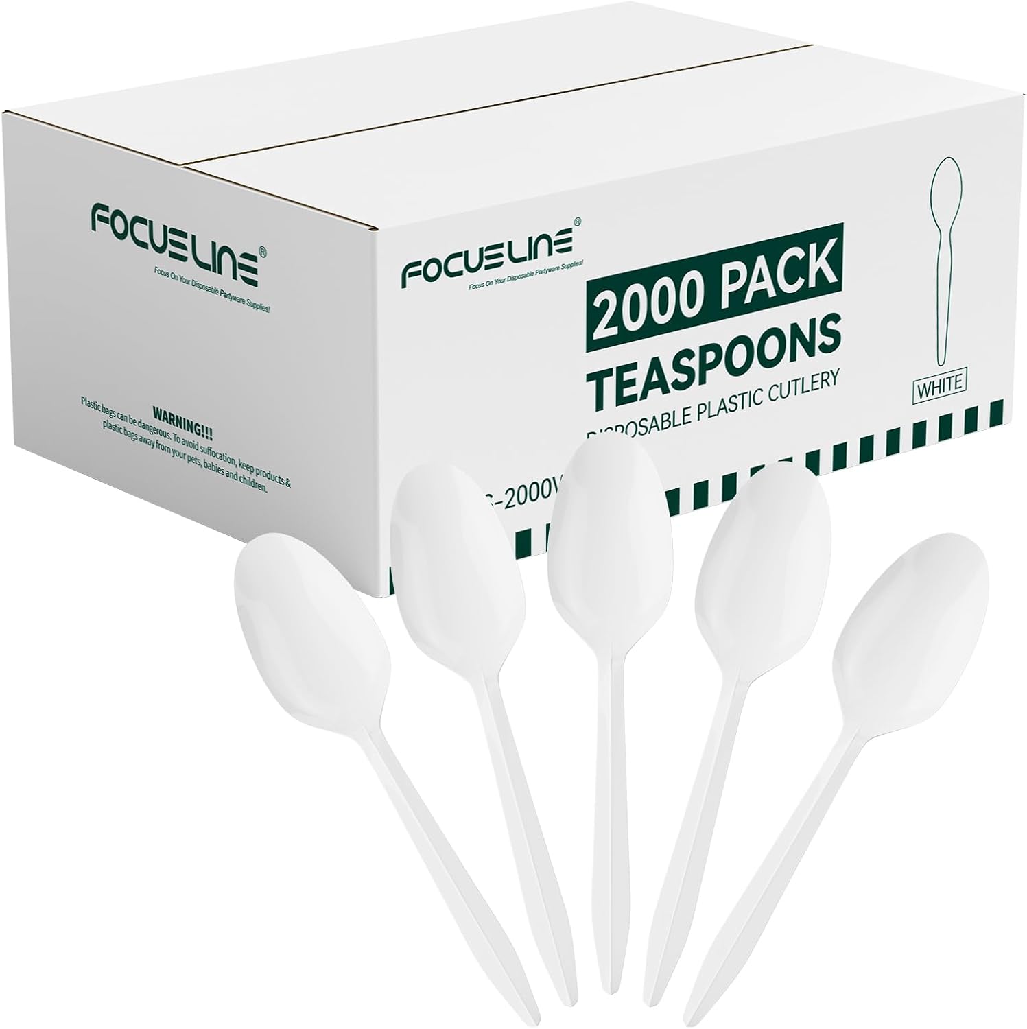 FOCUSLINE 2000 Pack White Plastic Spoons Bulk, Heat Resistant Disposable Teaspoons, Plastic Silverware for Take out Restaurants, Parties, Picnics, Travel & Any Events