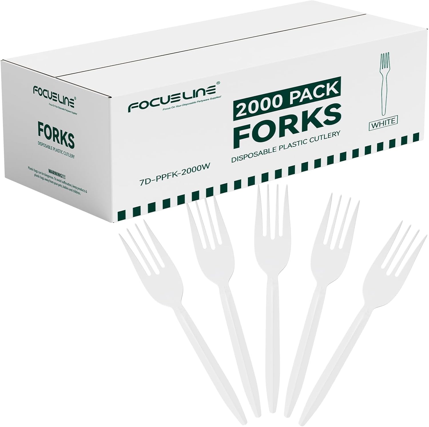 FOCUSLINE 2000 Pack White Plastic Forks Bulk, Heat Resistant Disposable Forks, Plastic Silverware for Take out Restaurants, Parties, Picnics, Travel & Any Events
