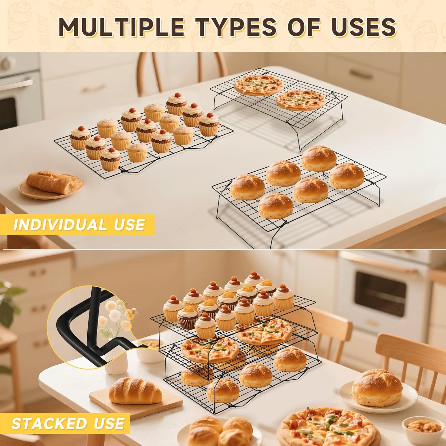 - Easy-to-Clean Stackable Wire Rack: These cooling racks are dishwasher-safe or quick to hand wash—just soak and brush after use