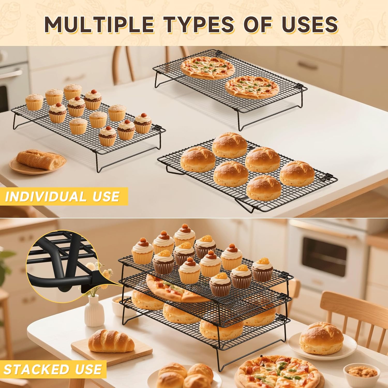 - Easy-to-Clean Stackable Wire Rack: These cooling racks are dishwasher-safe or quick to hand wash—just soak and brush after use