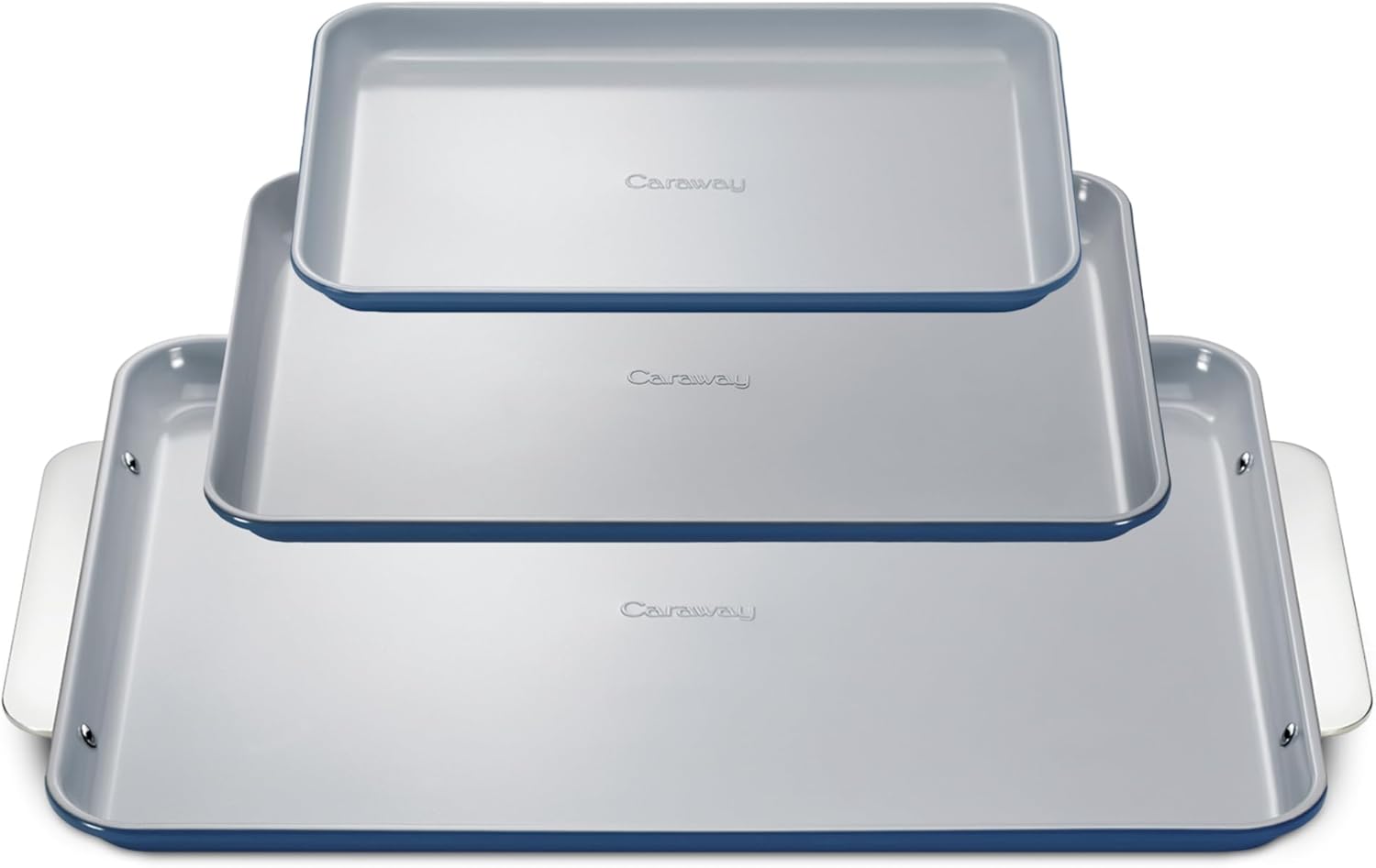 Caraway Non-Stick Ceramic Baking Sheet Trio - Naturally Slick Ceramic Coating - Non-Toxic, PTFE & PFOA Free - 18 x 13" Large, 15 x 10" Medium, & 9" x 13" Small - Navy