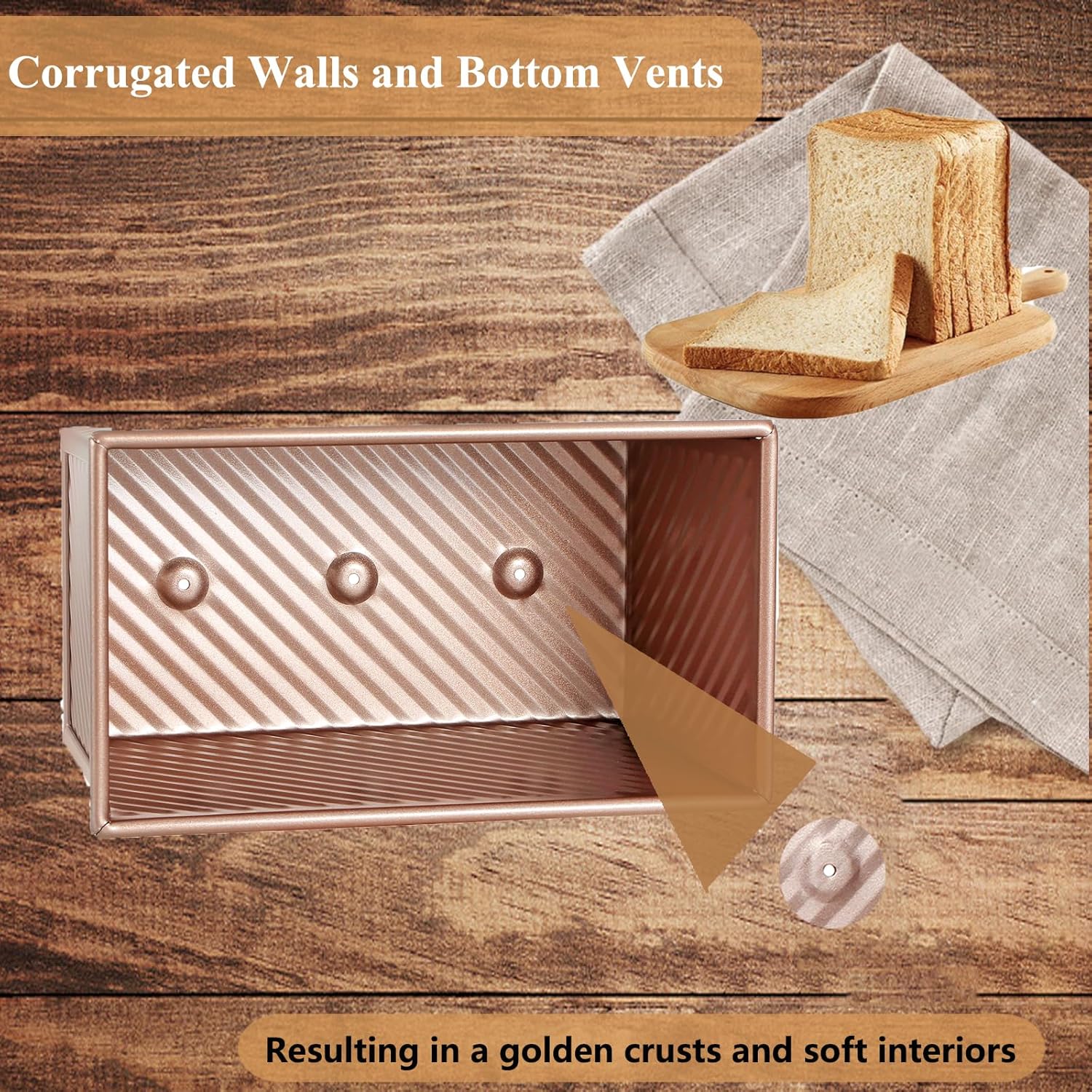 - PREMIUM QUALITY & EASY RELEASE: Food-safe nonstick PTFE/PFOA-free coating ensures effortless bread removal without residue. Corrugated walls and bottom vents enhance air circulation for golden crusts and soft interiors. Perfect for gluten-free, whole grain, or Japanese milk bread.