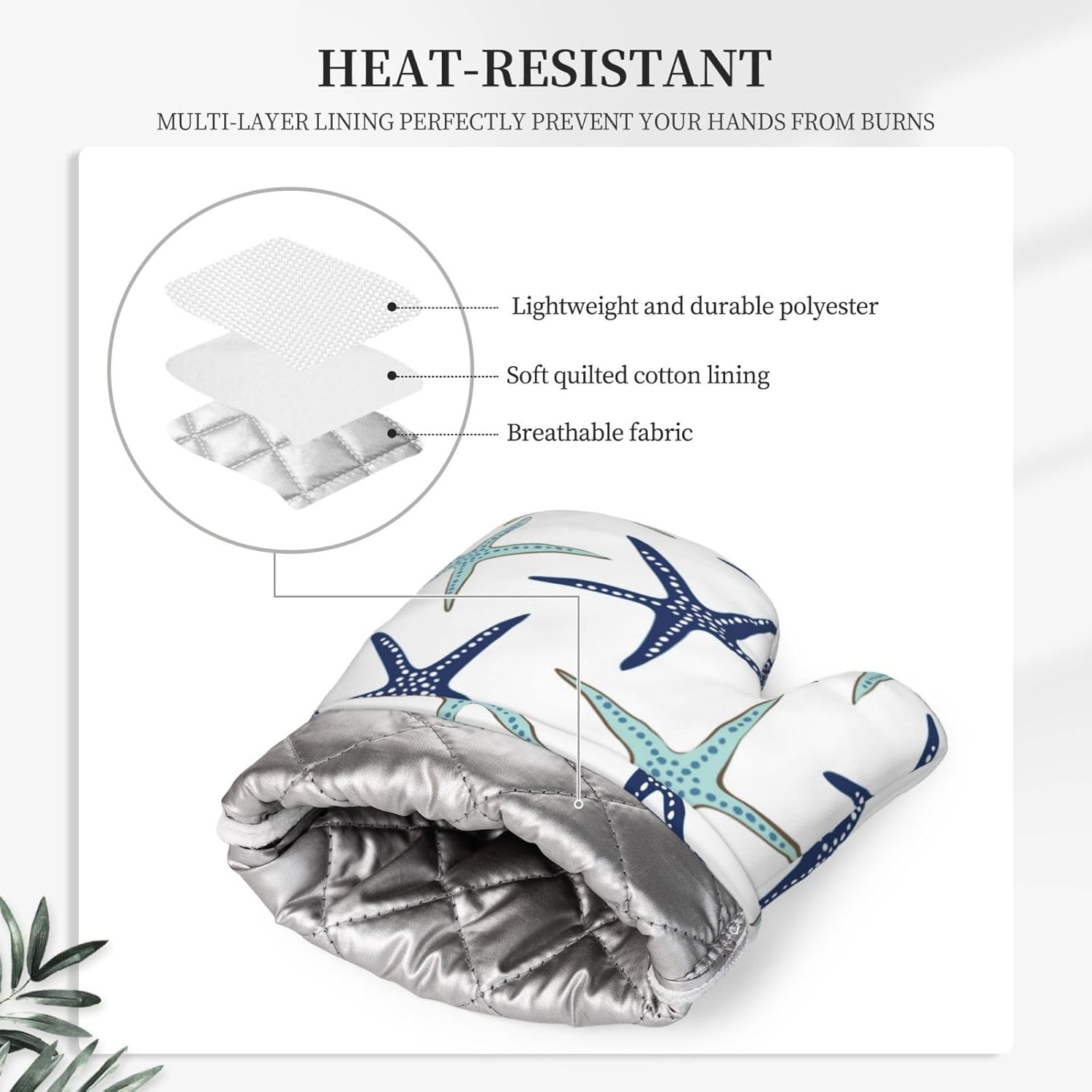 - NON-SLIP GRIP: The nautical starfish oven mitts feature a textured, non-slip surface that enhances your grip and control when handling hot items. This provides you with a secure hold, reducing the risk of accidental slips or drops while transferring dishes from the oven or stovetop