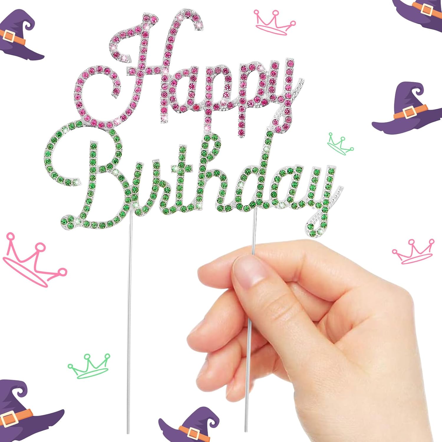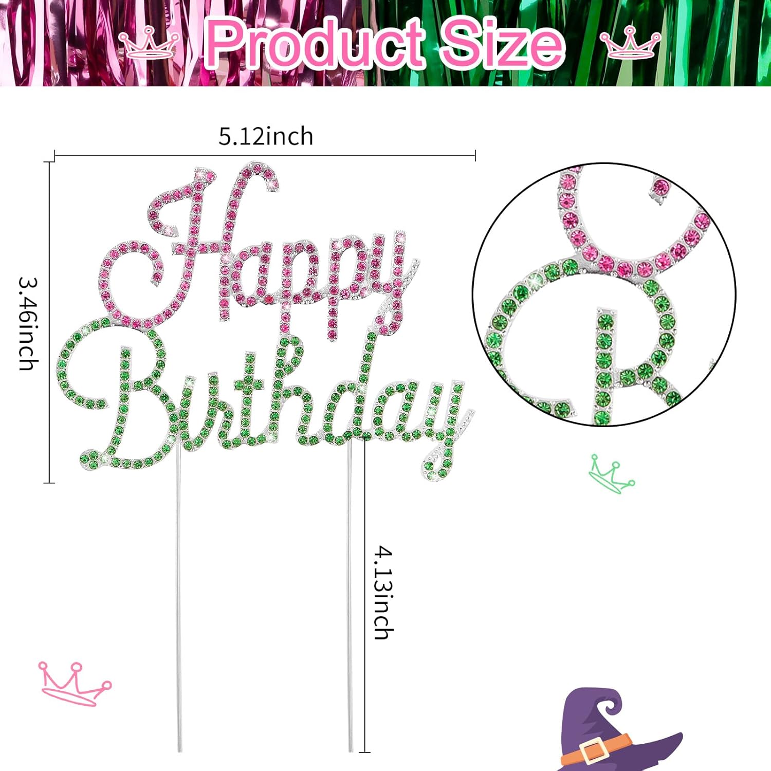 Happy Birthday Cake Topper Pink & Green Rhinestones Wicked Themed Cake Topper for Birthday Party Decorations