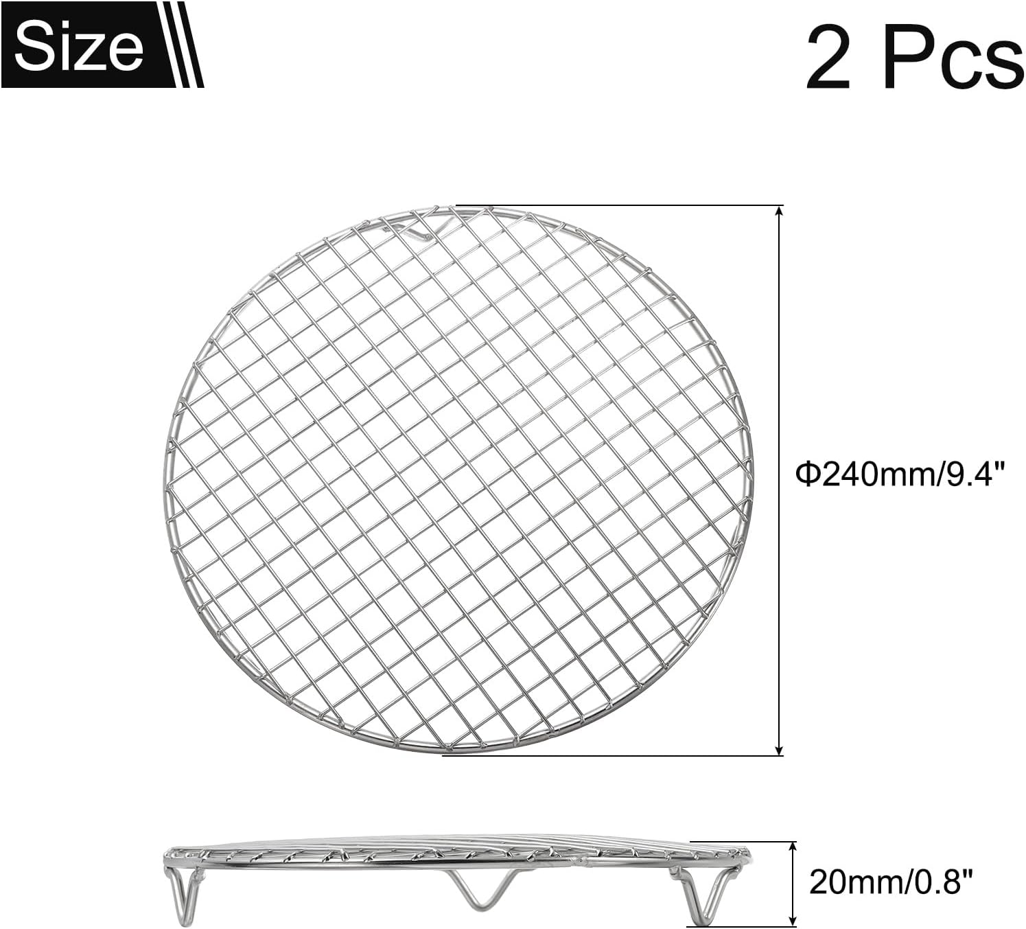 uxcell 2 Pcs Round Cooking Rack with Legs, Dia 9.4 Inch 304 Stainless Steel Barbecue Grill for Cooking Baking Barbecue Air Fryer Racks, Silver