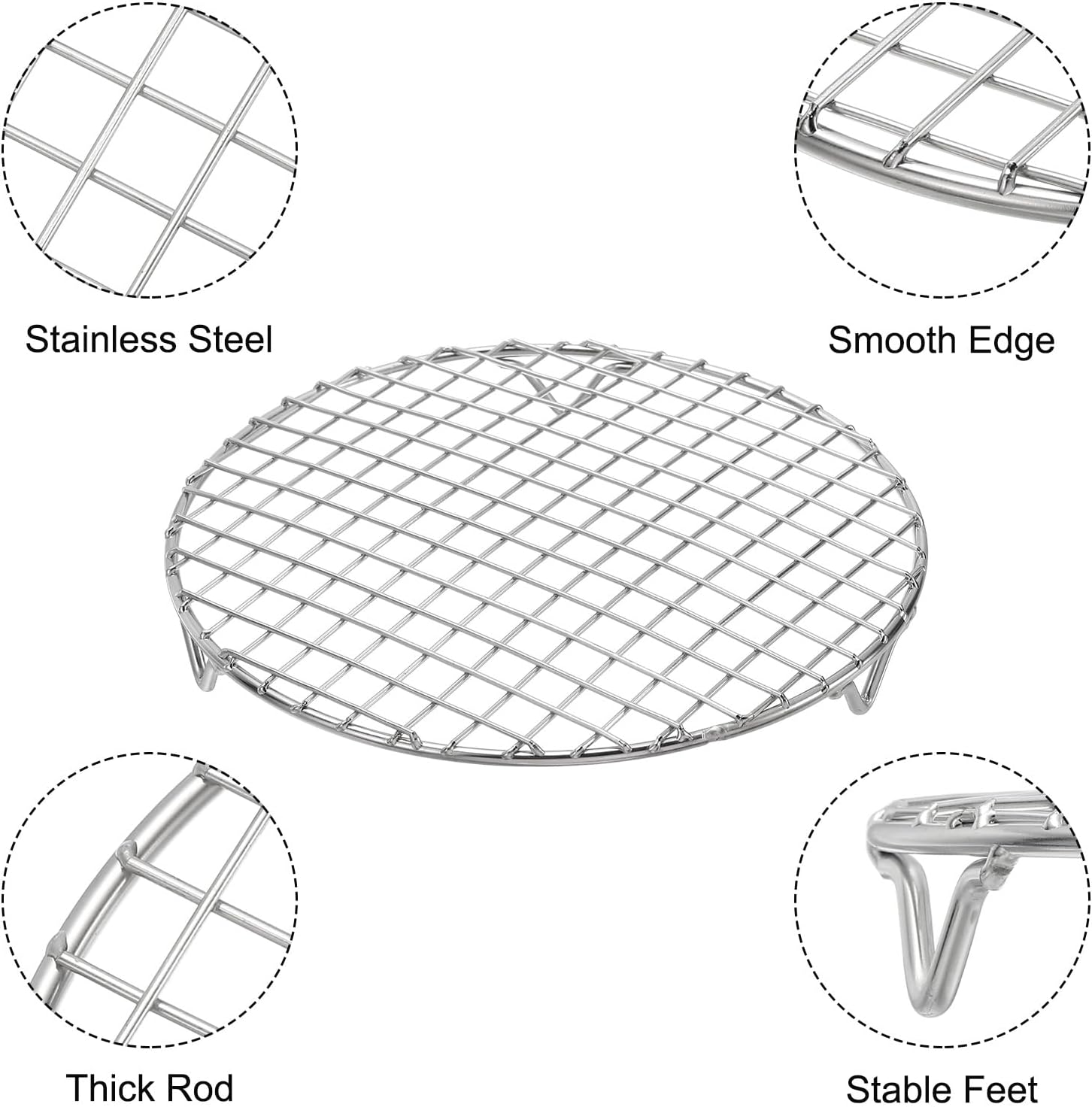uxcell Round Cooking Rack with Legs, Dia 7.9 Inch 304 Stainless Steel Barbecue Grill for Cooking Baking Barbecue Air Fryer Racks, Silver