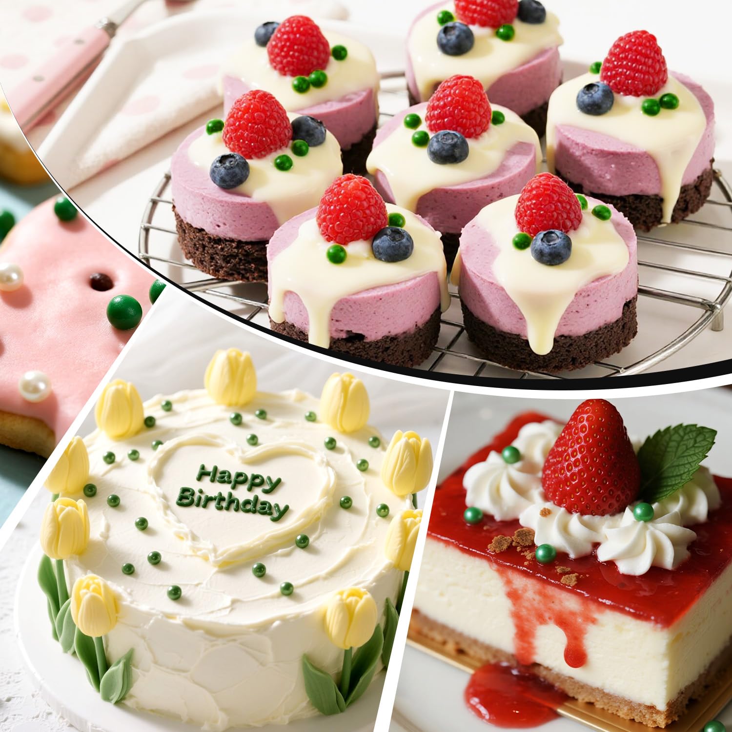 - These Edible Deep Green Pearl Sprinkles feature a mixed-size design. They are a perfect match for cakes, cupcake toppers, donuts, decorating cookies, ice cream, waffles, and any dessert you can imagine to turn them into a baking delight.