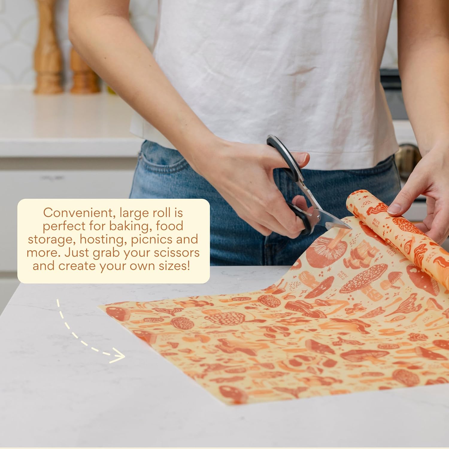 - CUSTOMIZABLE FOOD WRAPS for all your kitchen storage solutions. Just grab your scissors and create your own sizes for sandwich wraps, bread wraps, reusable produce bags, bowl covers, cheese storage, and more.