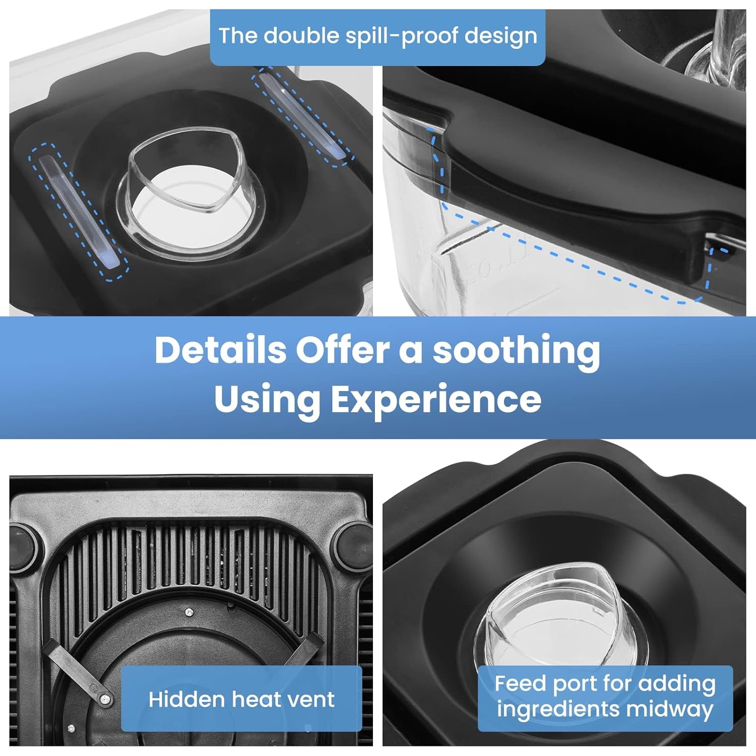 - NOISE CONTROL — SYBO blender, with a 4D system, advanced noise reduction & smart tech, suits commercial kitchens. Its 48oz pitcher handles smoothies, nuts, shakes & ice crushing.