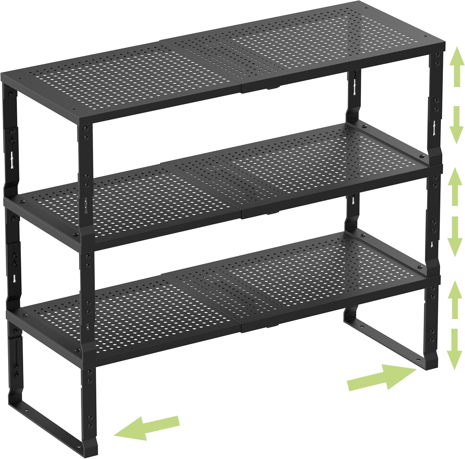 Heavy-Duty Adjustable Metal Shelf Organizer - Expandable & Stackable Pantry Storage Rack for Kitchen, Bathroom, RV, Cabinets(3 Packs/Black, Large)