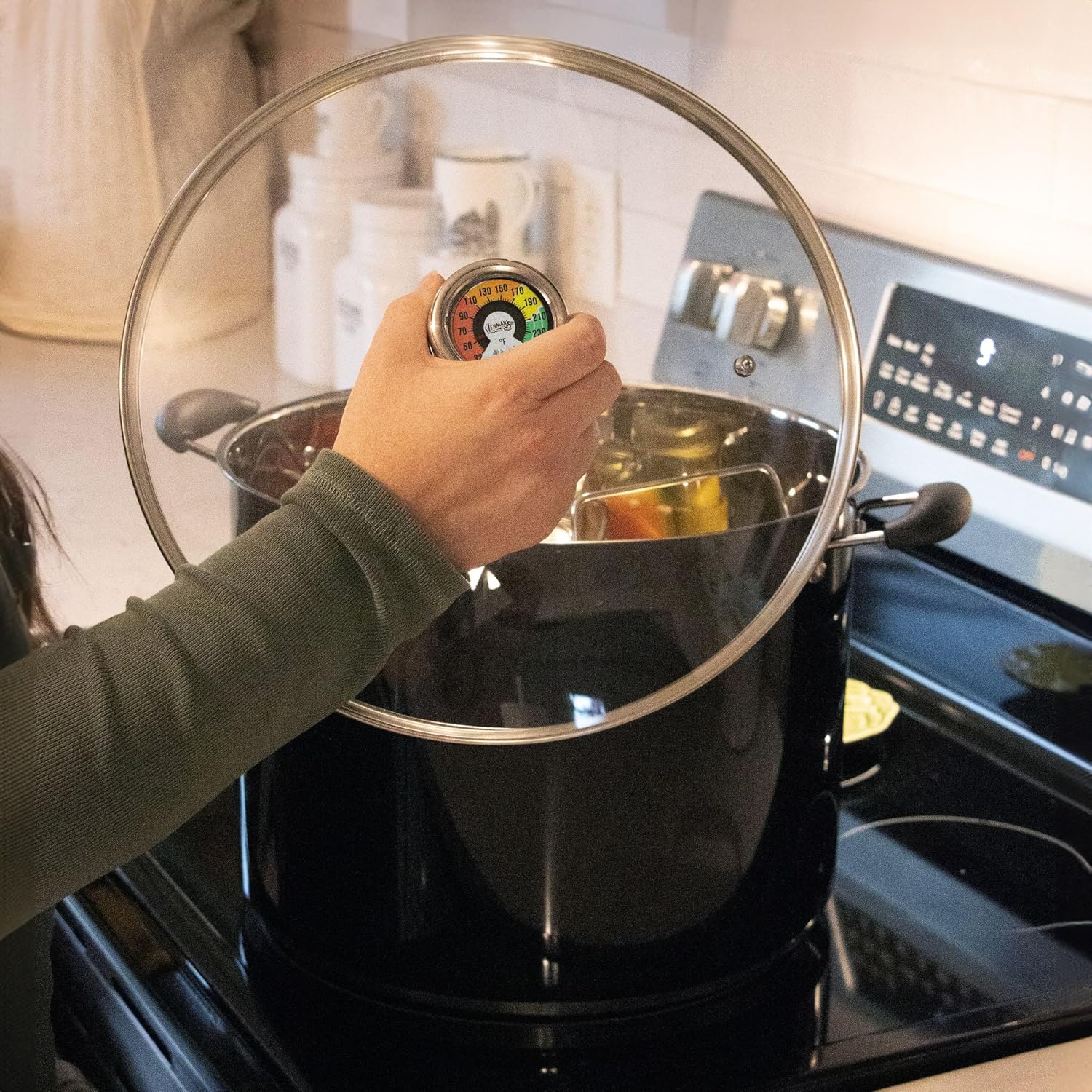 Lehman's 21.5-Quart Water Bath Canner with Pressure Gauge, Durable Stainless Steel Stockpot for Home Canning and Preserving, Black