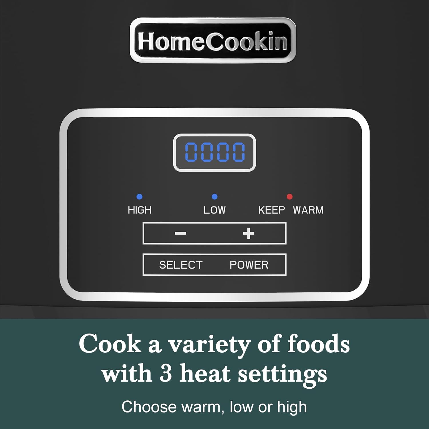 HOMECOOKIN 6-Quart Programmable Slow Cooker with Timer - Small Kitchen Appliance for Family Dinners - Serves 6+ People - Heat Settings: Keep Warm(Black)