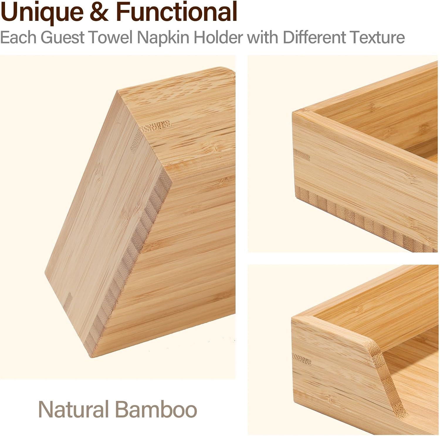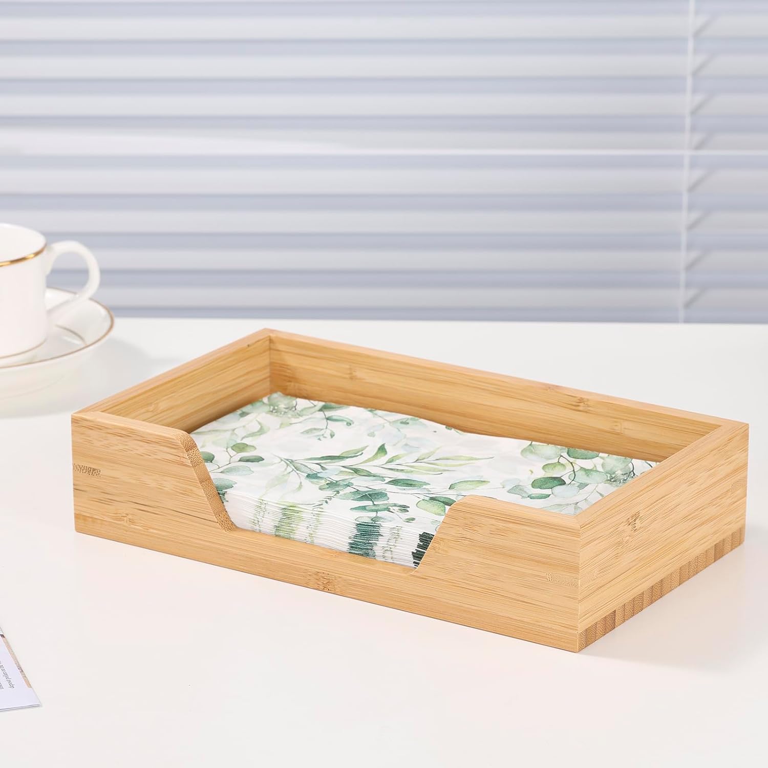 - Perfect Fit for Guest Towels: The guest towel napkin holder is made of natural bamboo. Measuring 9.29"L x 5.43"W x 2"H, it fits standard 8.5" x 4.5" guest towel napkins and holds up to 20 packs—ideal for everyday use or entertaining guests.
