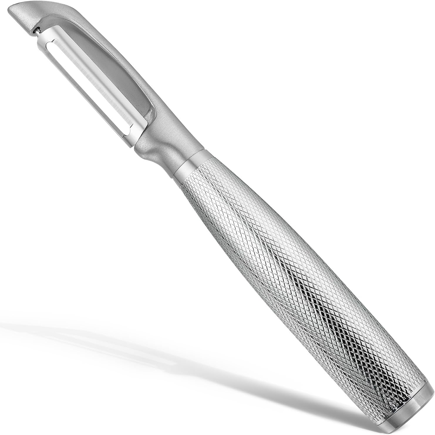 - Precision-Engineered Blade for Effortless Peeling: The blade is honed to a fine edge, allowing it to glide through tough skins and delicate produce with minimal pressure. This smooth action helps you prepare meals faster and with less food waste compared to standard peelers.
