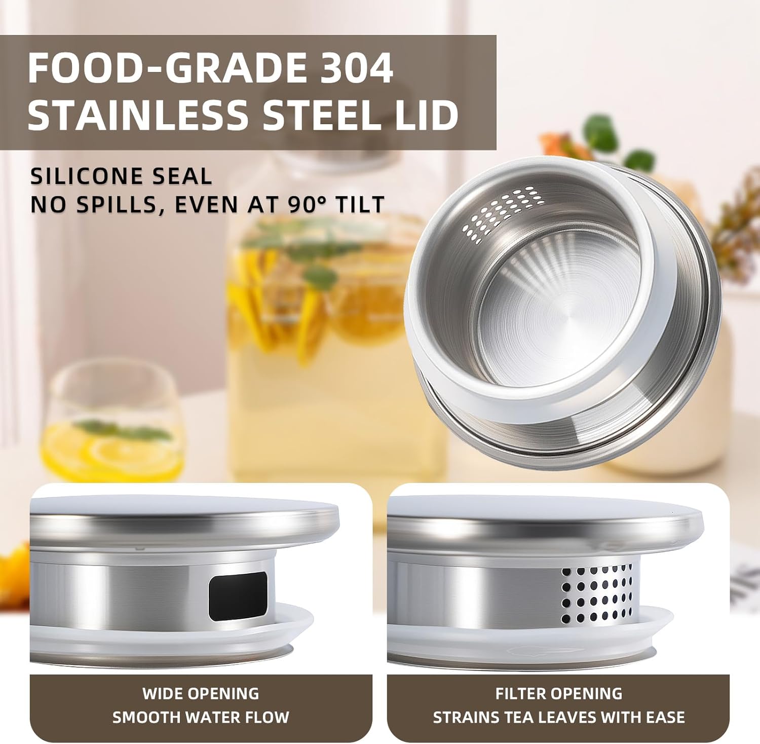 - Functional rust-proof stainless-steel lid: 304 stainless steel lid features 2-way outlets with large holes and small holes for filtration. It’s quite multi-functional for family use. The food-grade rubber ring makes sure the lid is tight and does not fall off while pouring.