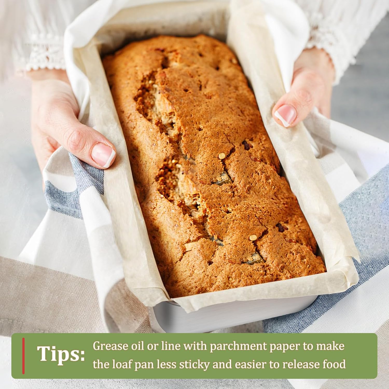 - EFFORTLESS RELEASE & CLEAN: This large bread tin is processed with brushed finish which ensures for a less-sticky surface for easy food release and less food residue, Rounded corners with no dead angle to avoid food accumulation, Super easy to clean by hand and dishwasher safe for less work (Recommended using parchment paper or greasing oil for easier release)