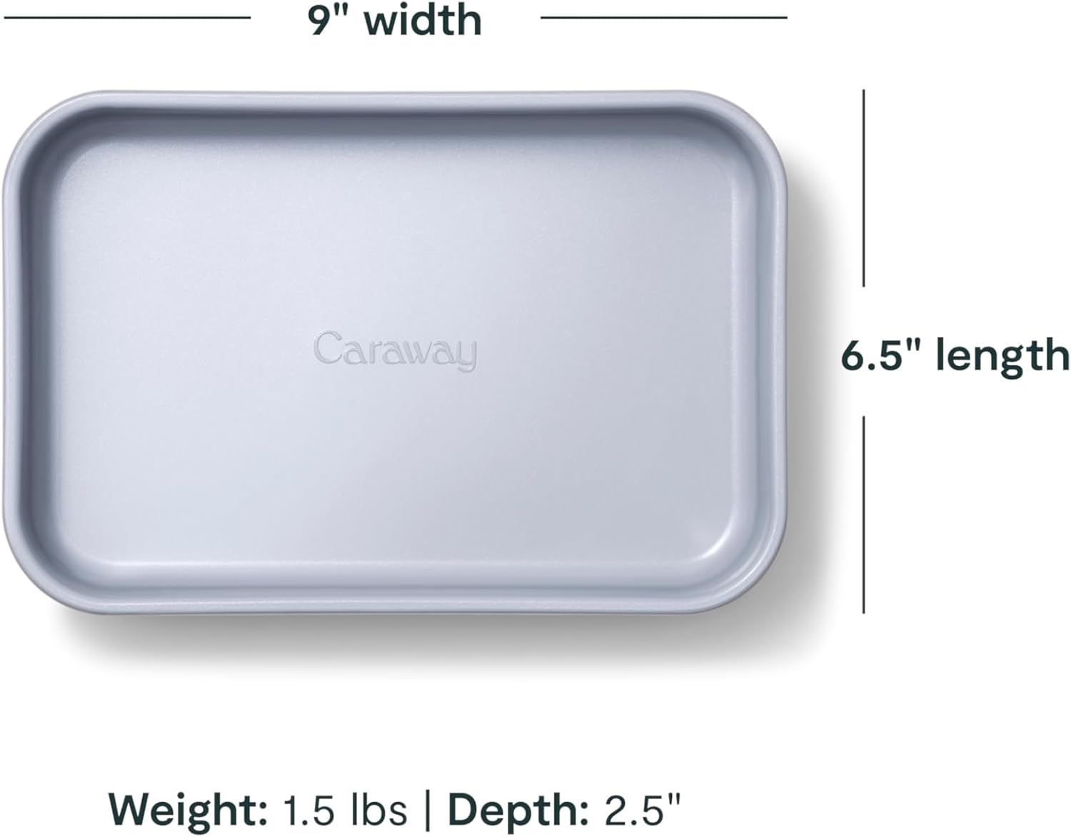 Caraway Nonstick 9” x 6.5” Small Rectangle Baking Pan Duo – Non-Toxic, PTFE & PFOA Free – Aluminized Steel Core – Deep Ceramic Baking Pan for Casseroles, Lasagna & More - Slate
