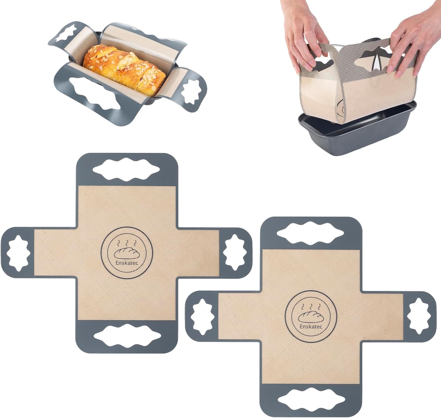 2 Pcs Silicone Bread Loaf Pan Liners, Reusable Food-Grade Silicone Bread Baking Mat, Non-Stick & Heat Resistant Loaf Pan Lifters, Sourdough Sling with 4 Handles, Fits 9x5" or 1.5Lb Loaf Pans